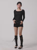 Perfect for a sunlit stroll or a casual date, this charming features a black crop top with elegant wavy white piping, paired with matching shorts for a coordinated, stylish look. Ideal for an outfit that combines comfort and romantic flair, ensuring you feel confident and classy on any outing.