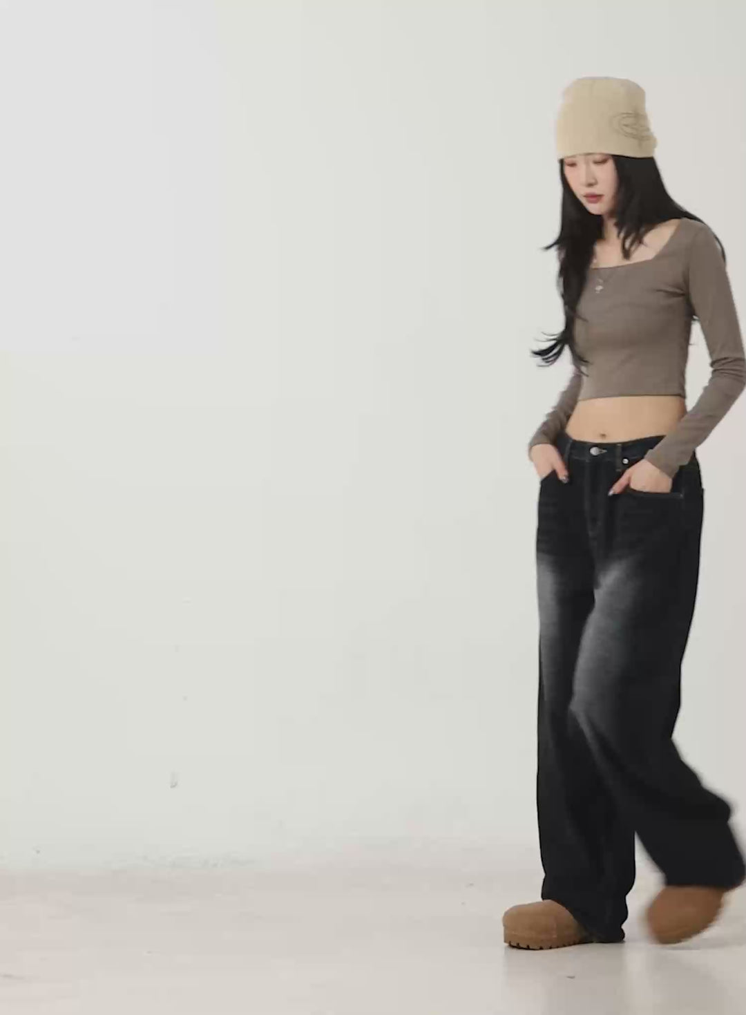 skyla-washed-wide-leg-baggy-jeans-if511 / Black