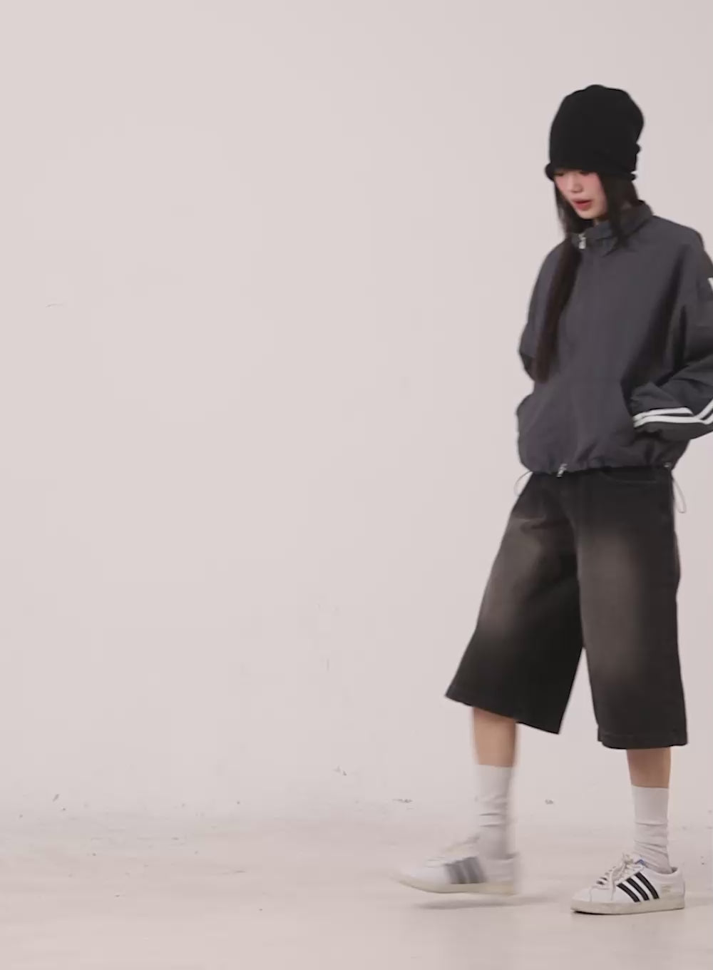 striped-loose-fit-windbreaker-cj528 / Dark gray