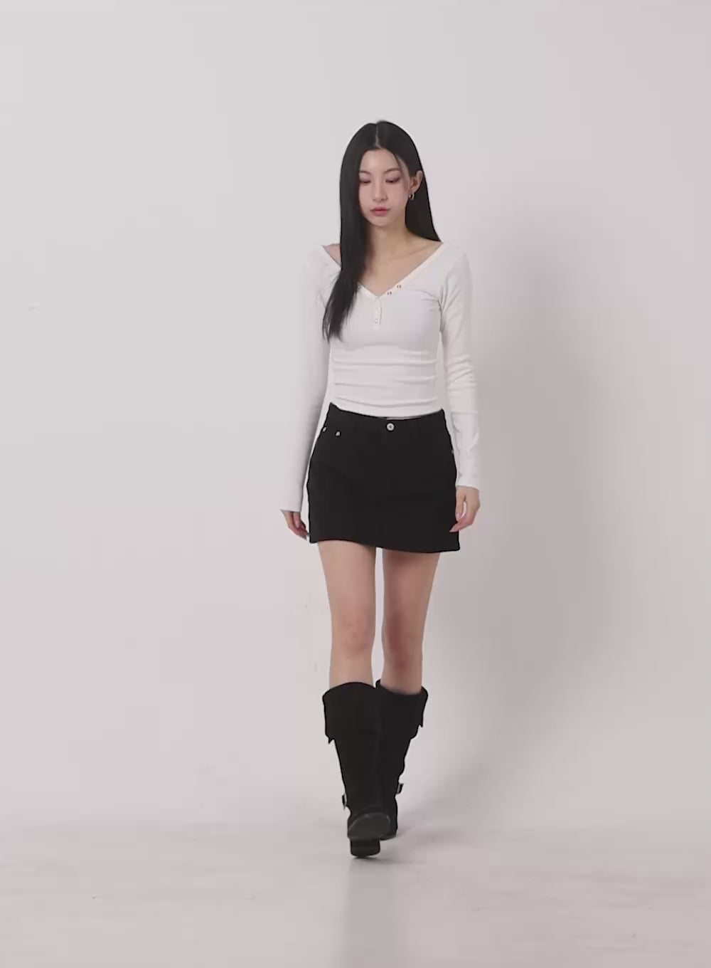 Buttoned Slim-Fit V-Neck Crop Top ID431