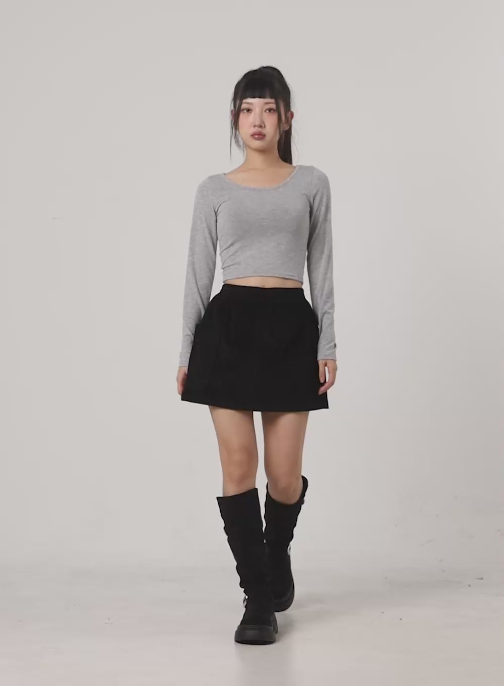classic-scoop-neck-crop-top-cn404 / Gray