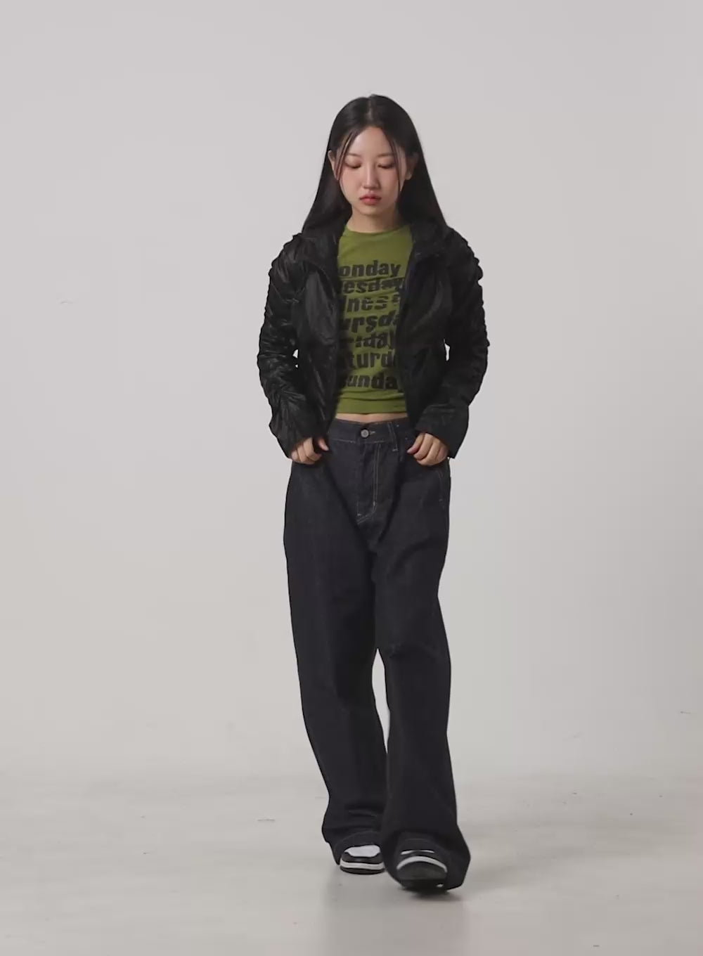 shirred-hooded-nylon-crop-jacket-co402 / Black