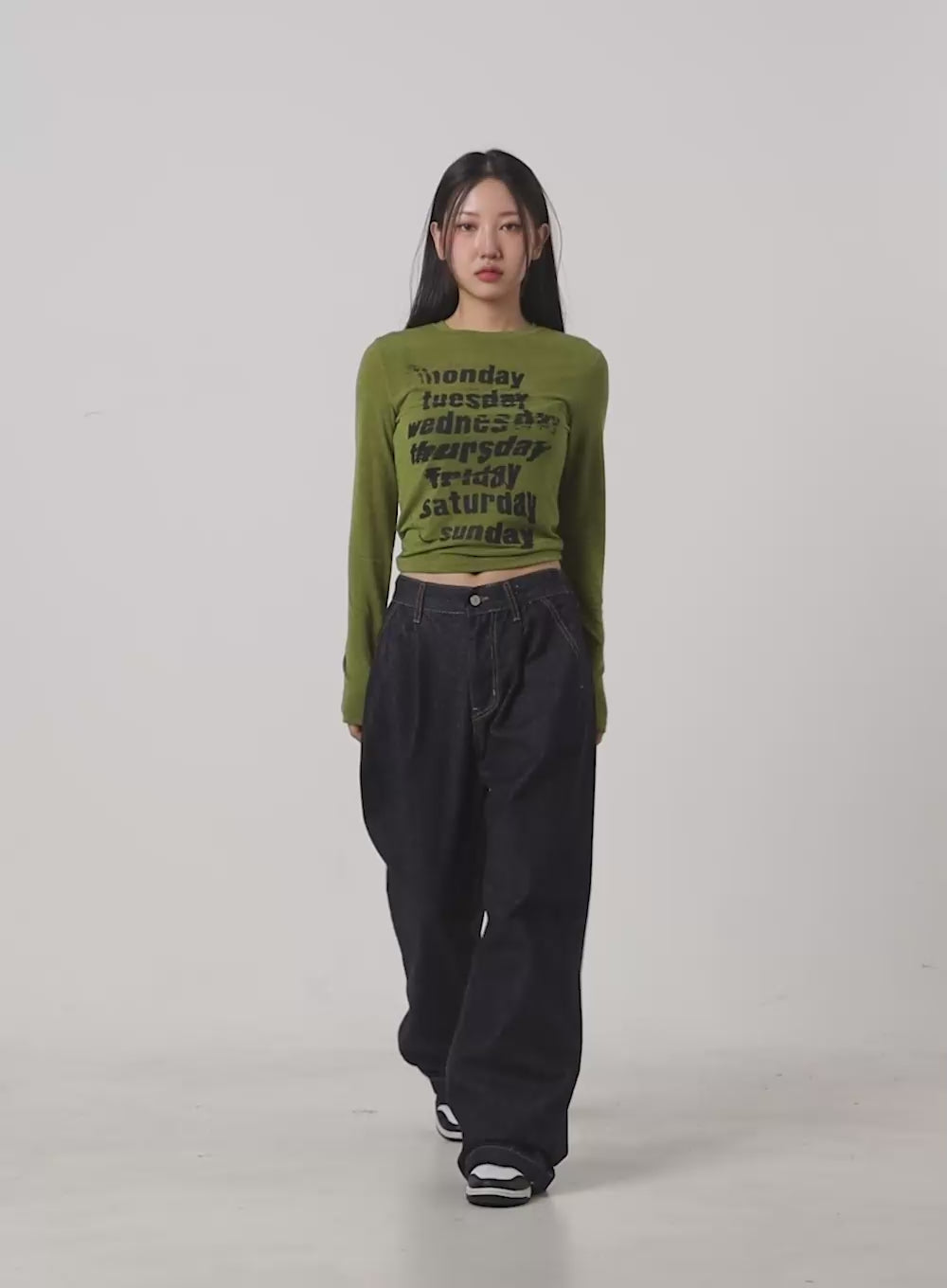 lola-pintuck-baggy-jeans-co402 / Dark blue