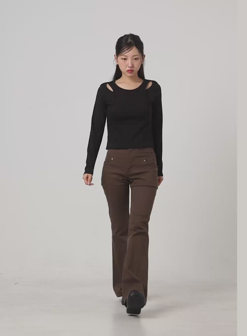 cutline-bootcut-cotton-pants-cs405 / Brown