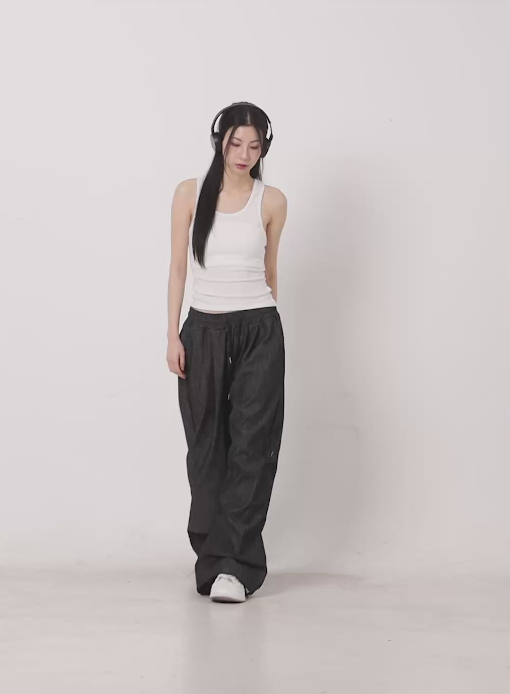 pintuck-denim-sweatpants-iy529 / Black