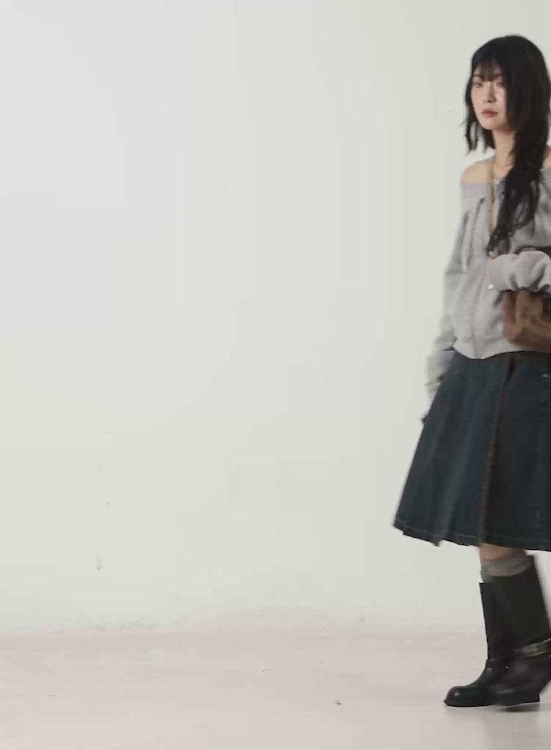 off-shoulder-slit-long-sleeve-top-cd509 / Gray