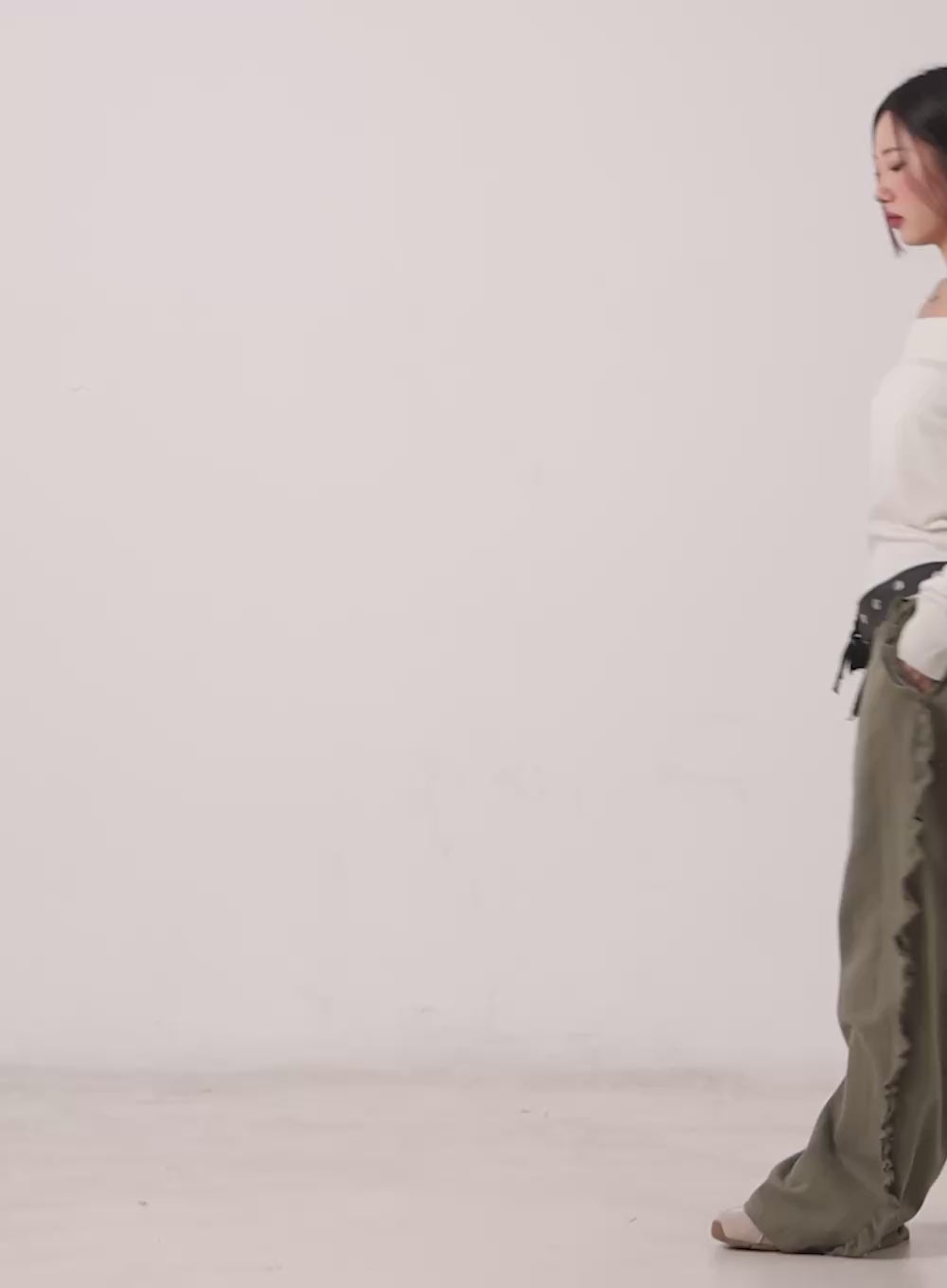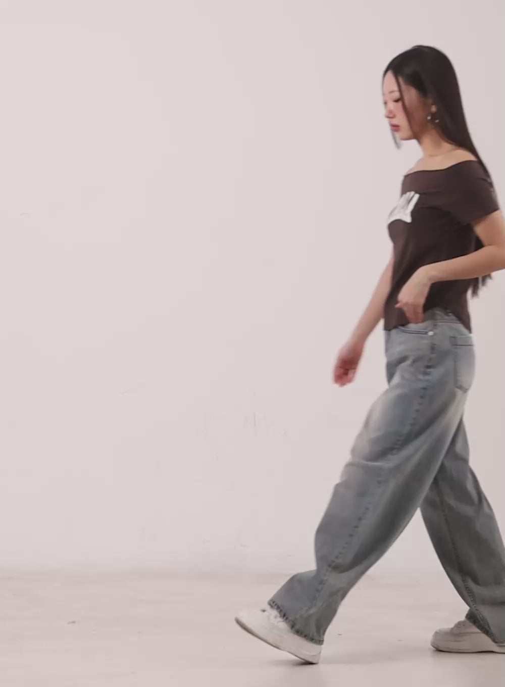 Heather Cargo Washed Wide-Leg Jeans IM528