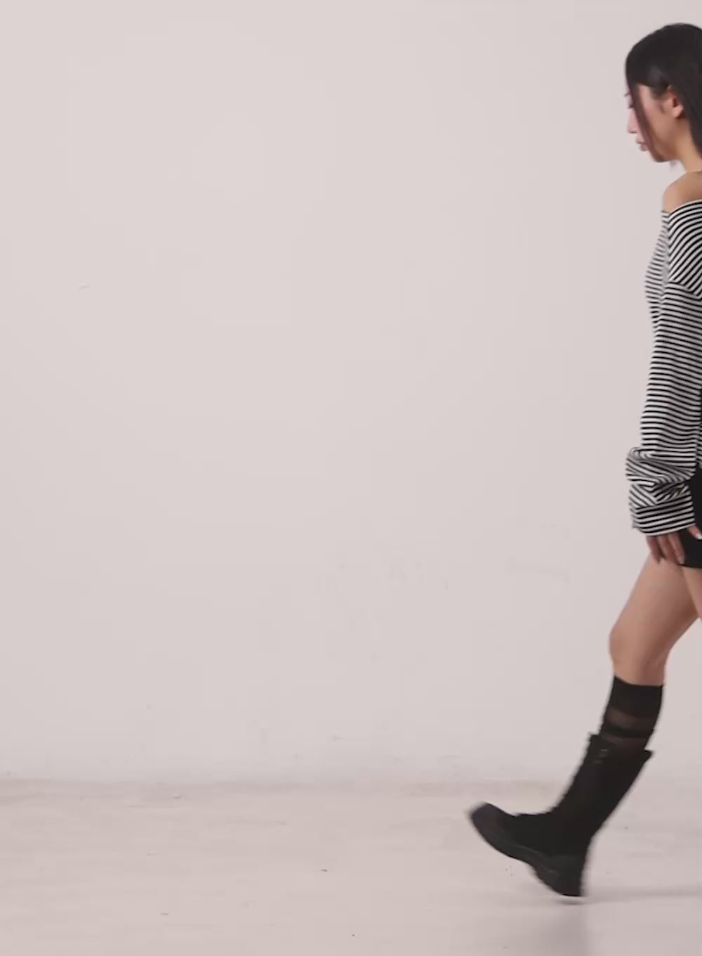 stripe-long-sleeve-off-shoulder-top-im524 / Black