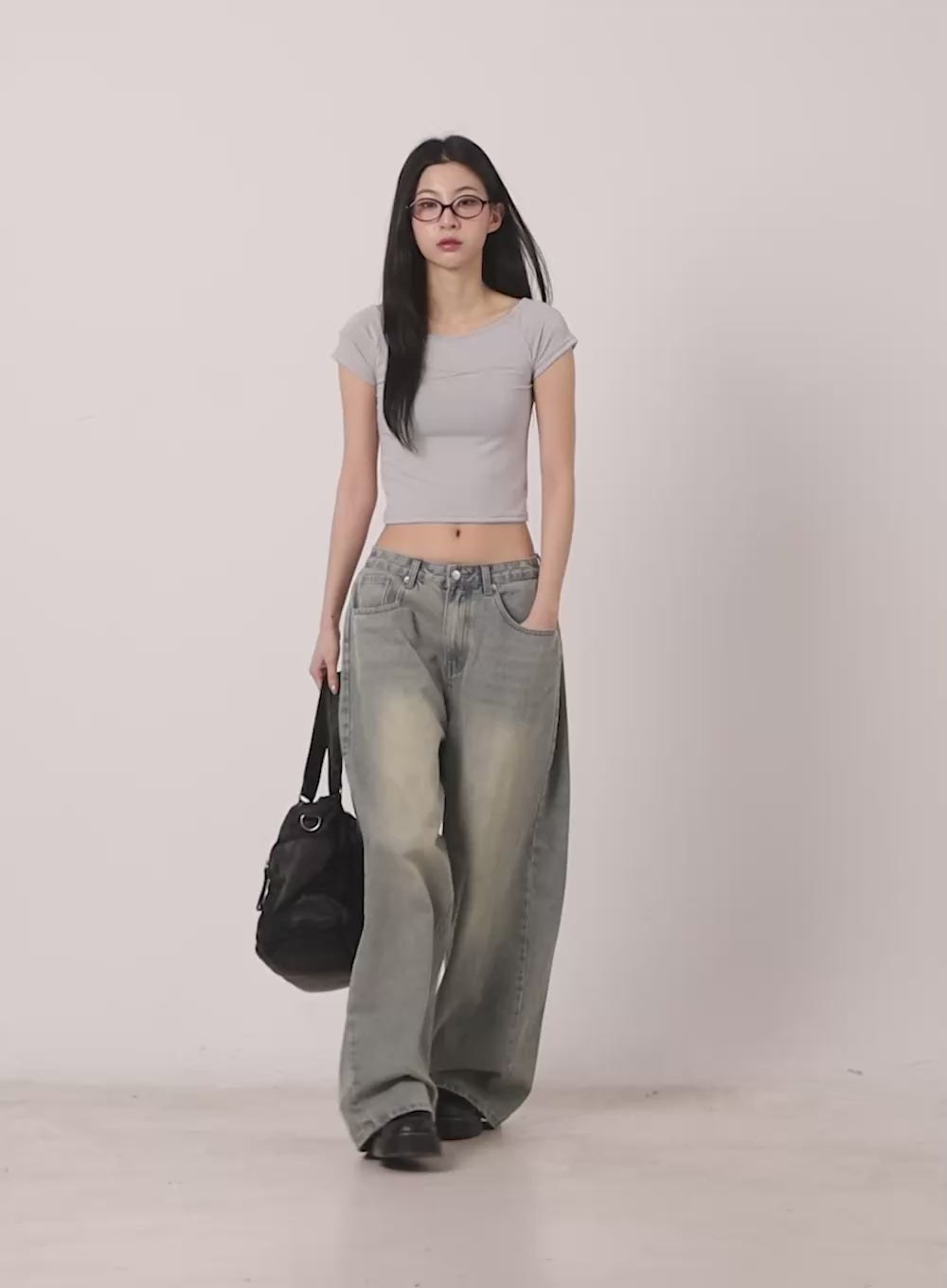 belle-washed-wide-leg-jeans-cf528 / Blue