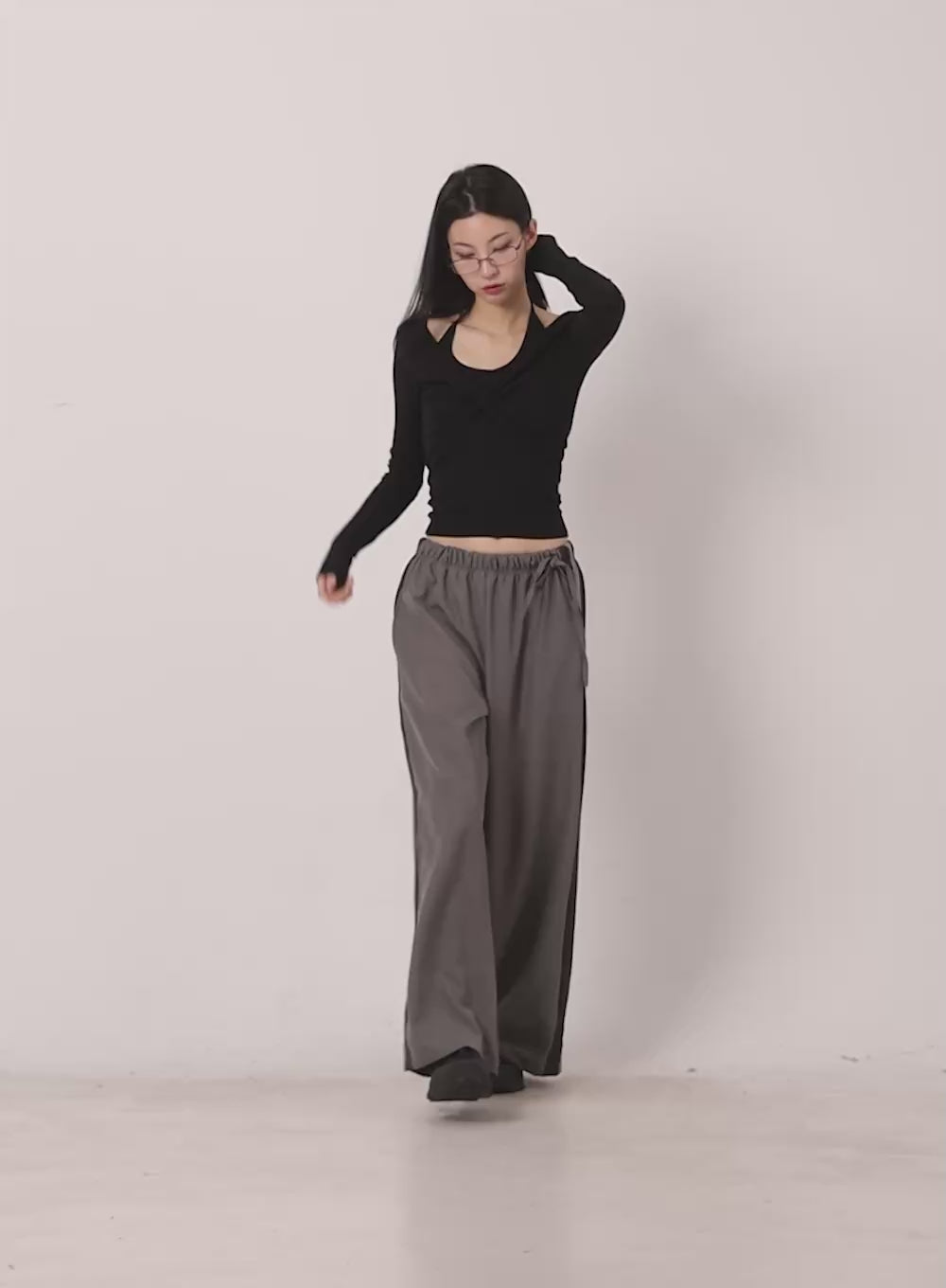 ruffle-layered-wide-leg-pants-cs502 / Gray