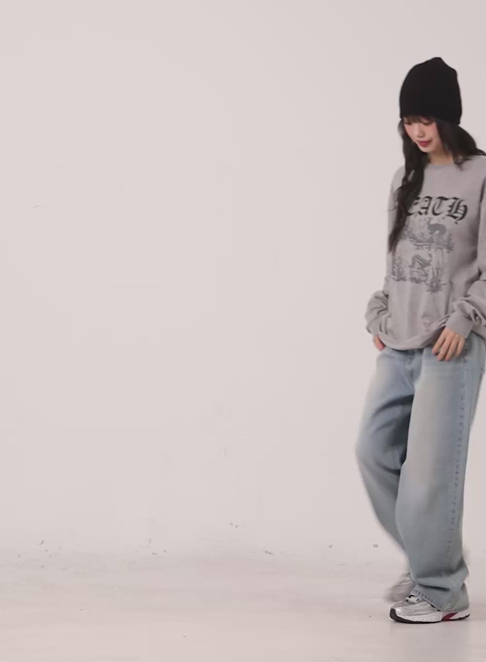oversized-cat-graphic-crew-neck-ij527 / Light gray