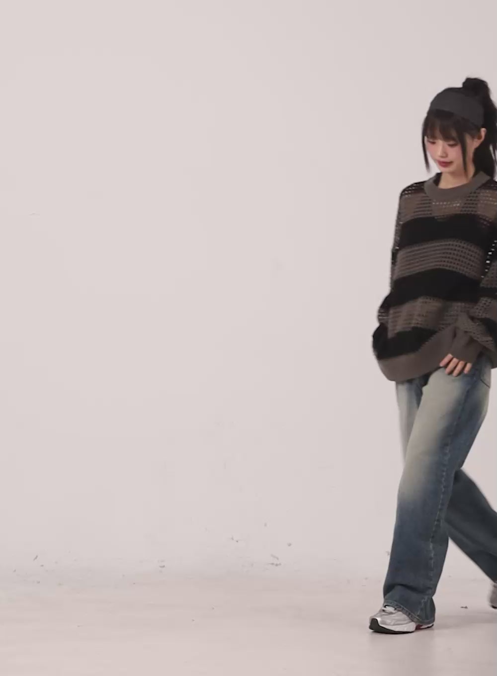 chic-striped-mesh-sweater-cj524 / Dark gray