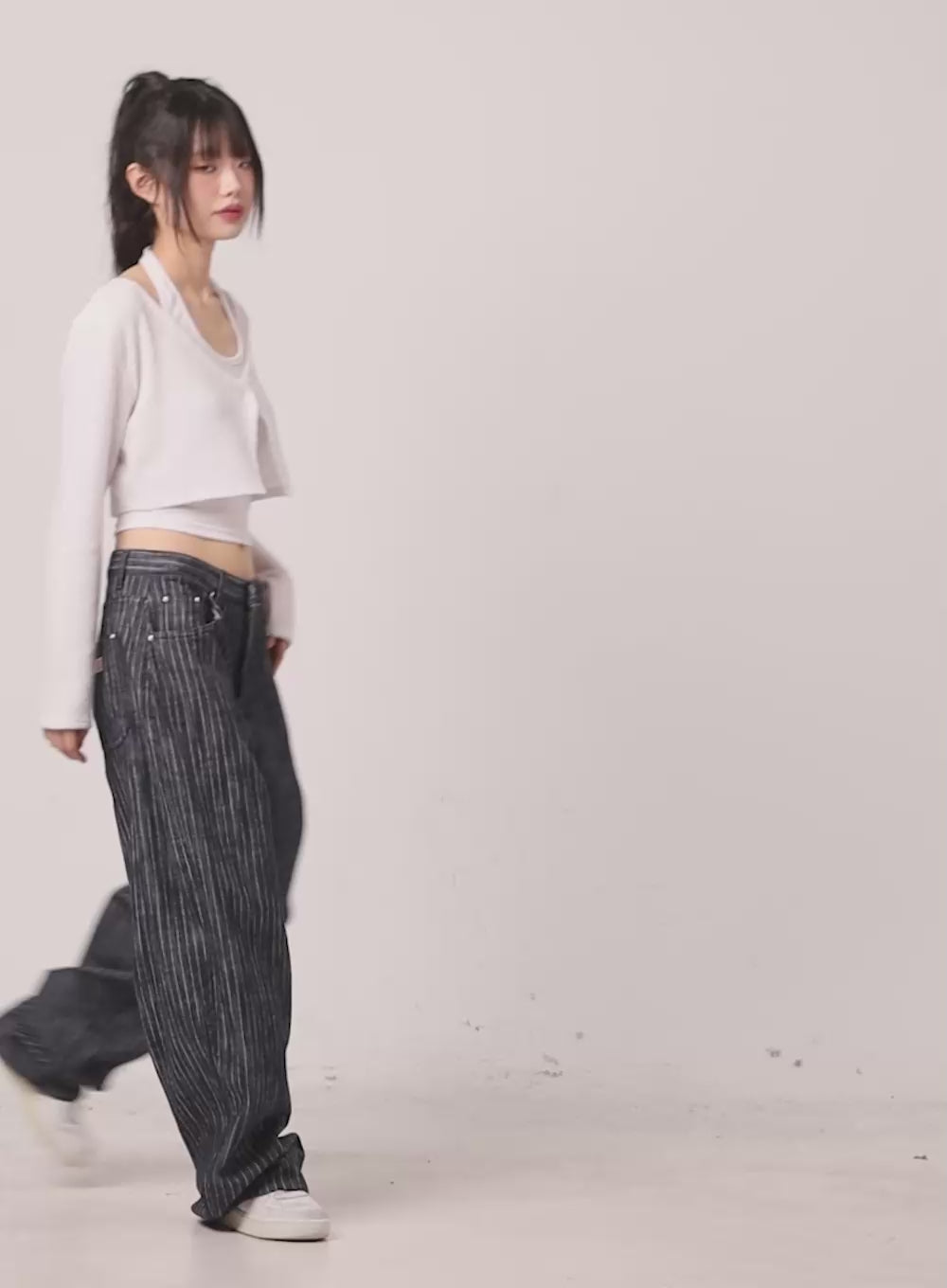 Esther Striped Wide-Fit Baggy Jeans CJ528