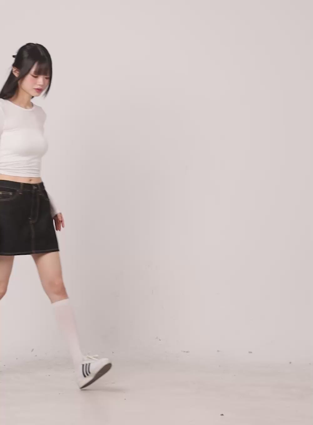 buckle-stitched-denim-mini-skirt-cj529 / Black