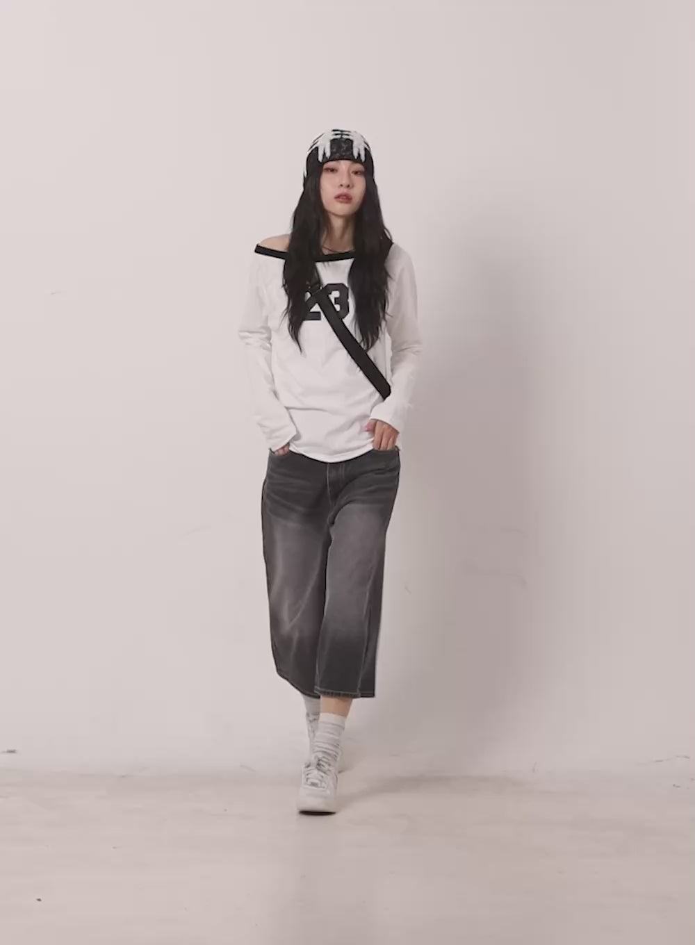 23 Graphic Off-Shoulder Long-Sleeve Top CA504