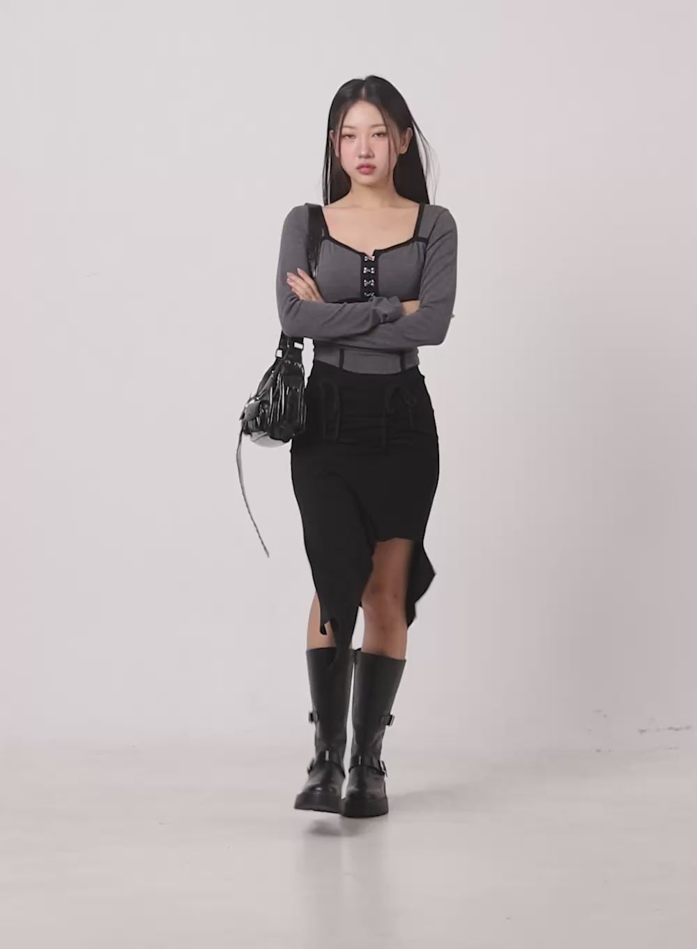 asymmetric-slim-fit-midi-skirt-cd411 / Dark gray