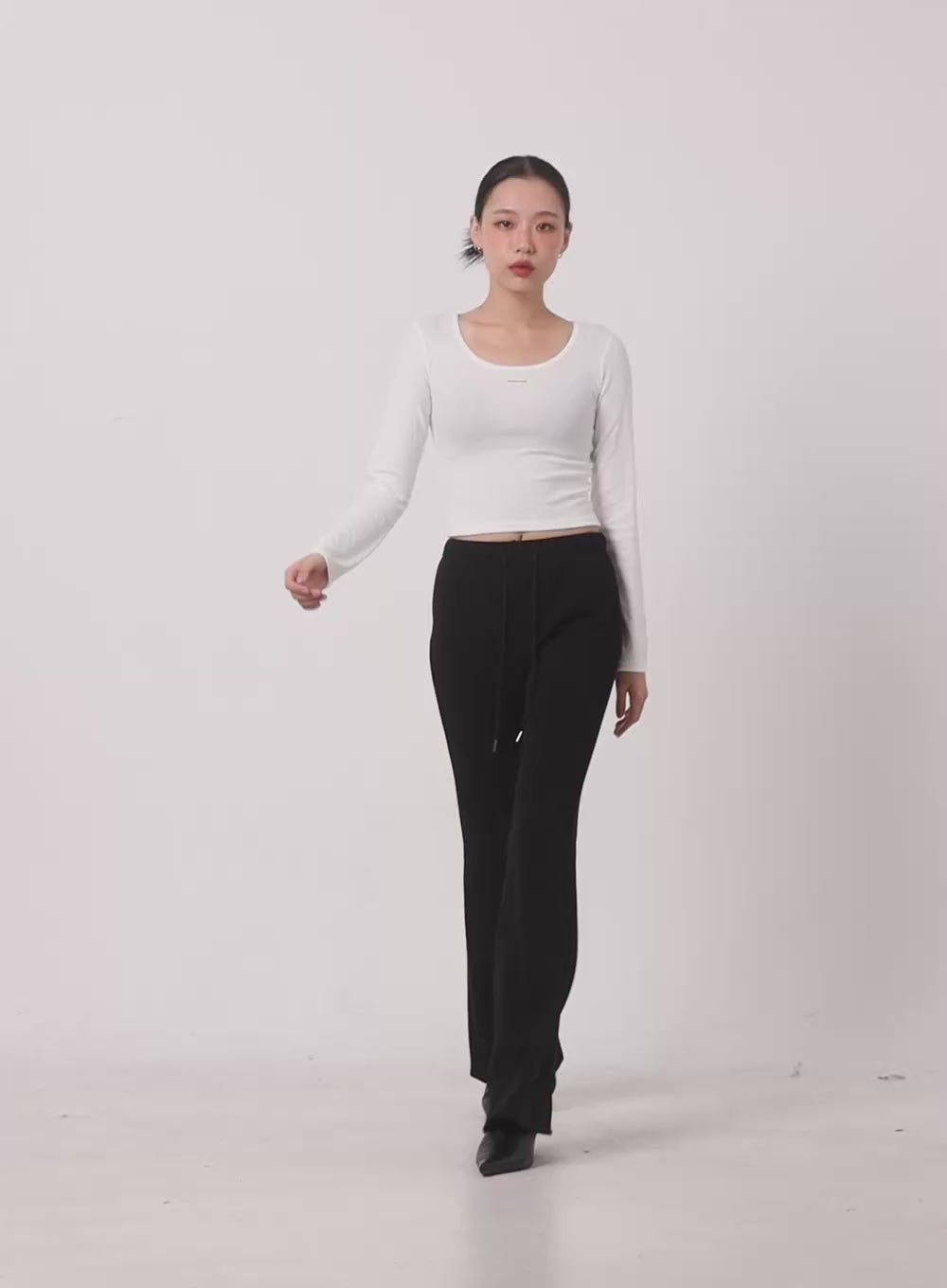 slim-fit-u-neck-long-sleeve-crop-top-cd410 / Black
