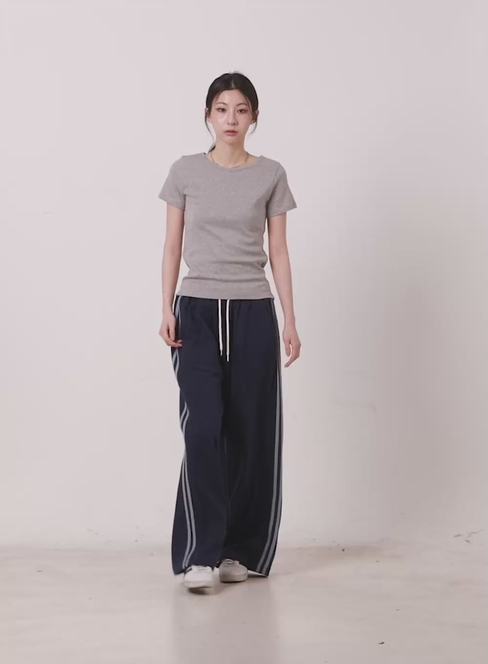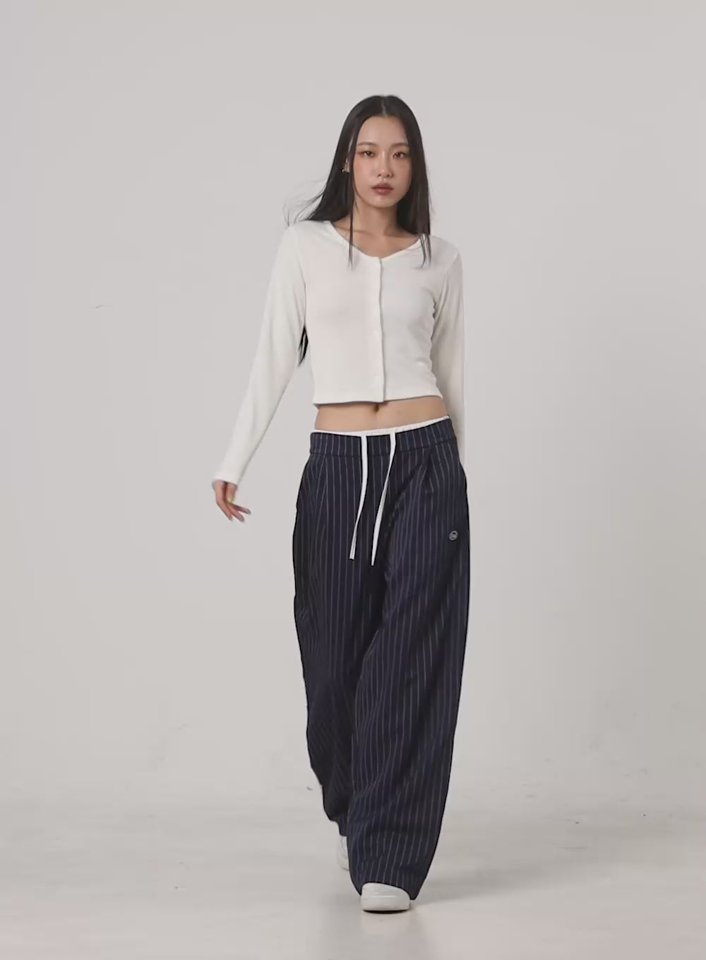 string-stripe-wide-fit-pants-co431 / Dark blue