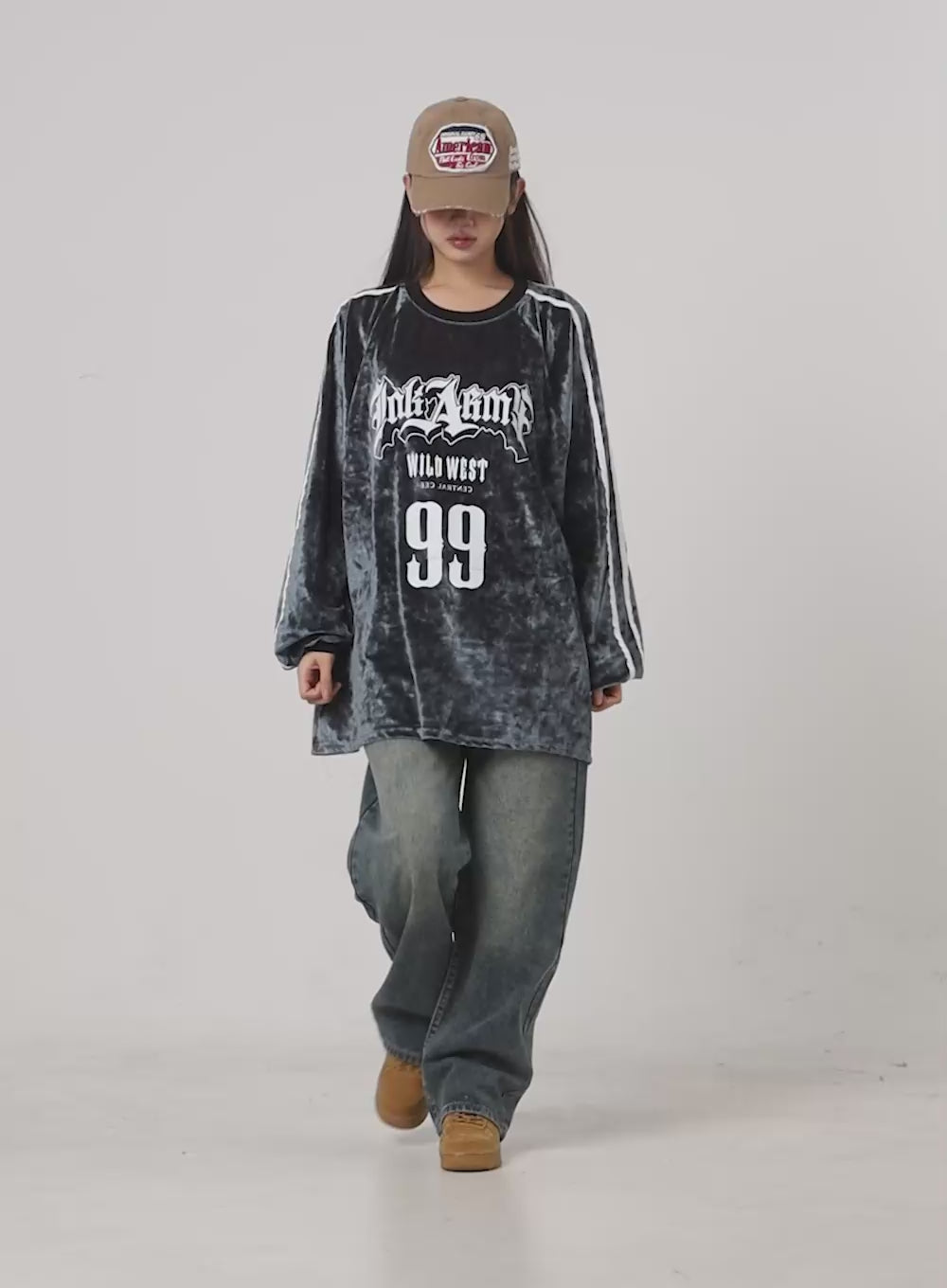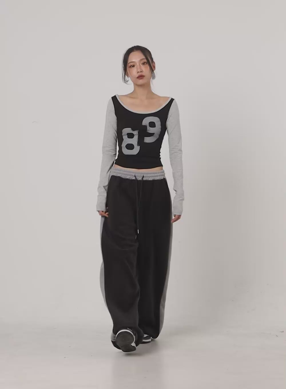 long-sleeve-raglan-printed-top-on404 / Light beige