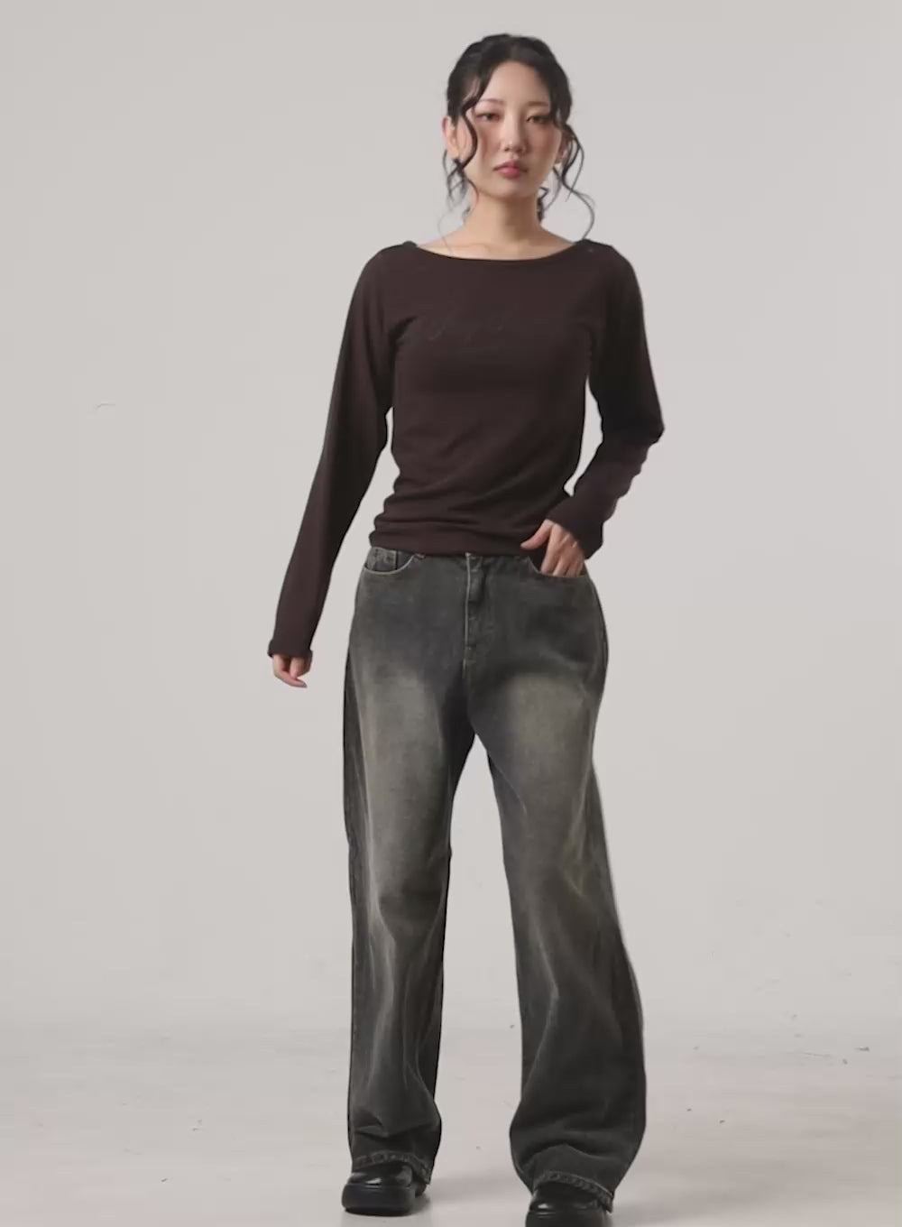printed-boat-neck-long-sleeve-shirt-cn404 / Black