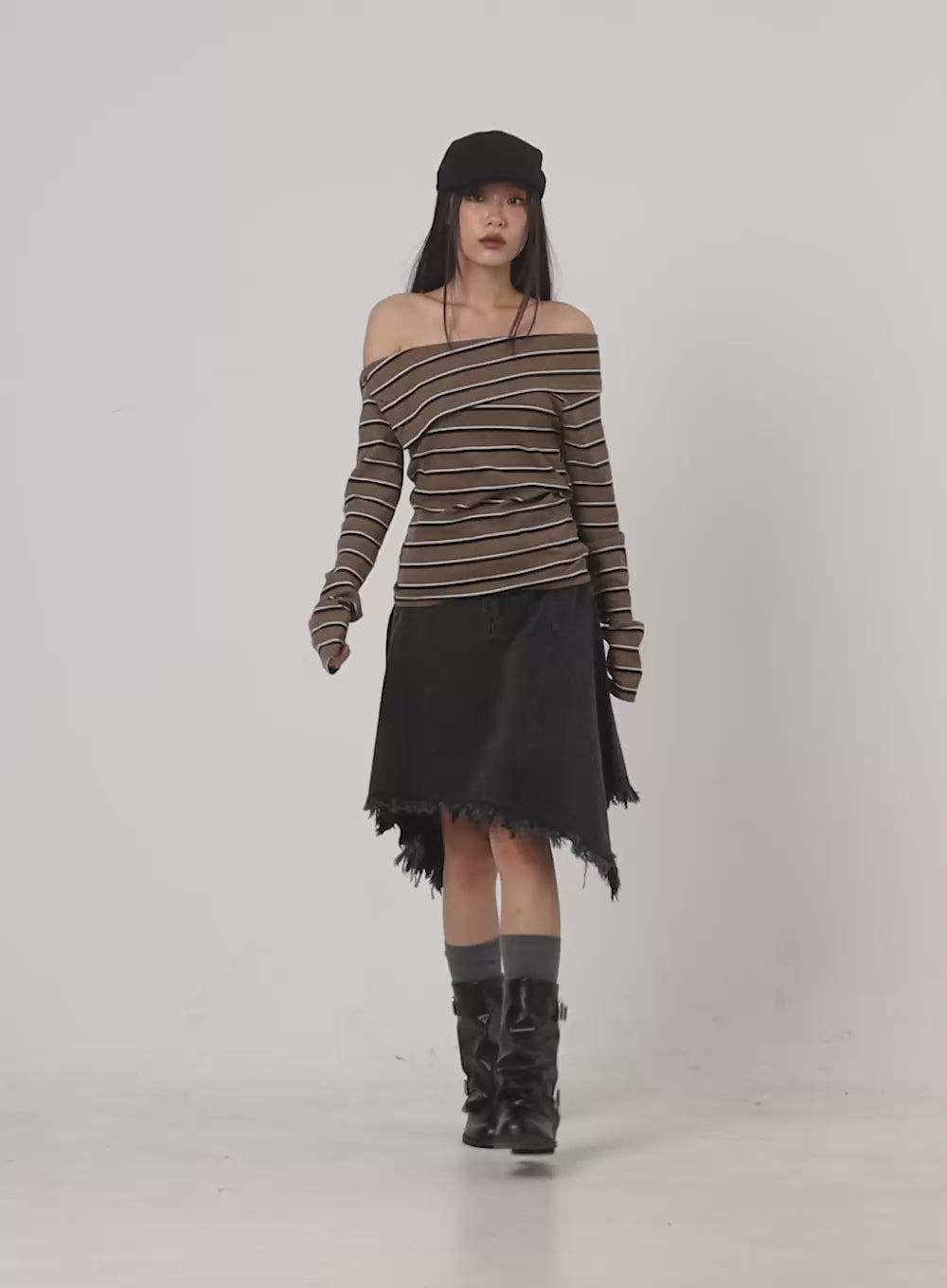 printed-boat-neck-long-sleeve-shirt-cn404 / Light beige