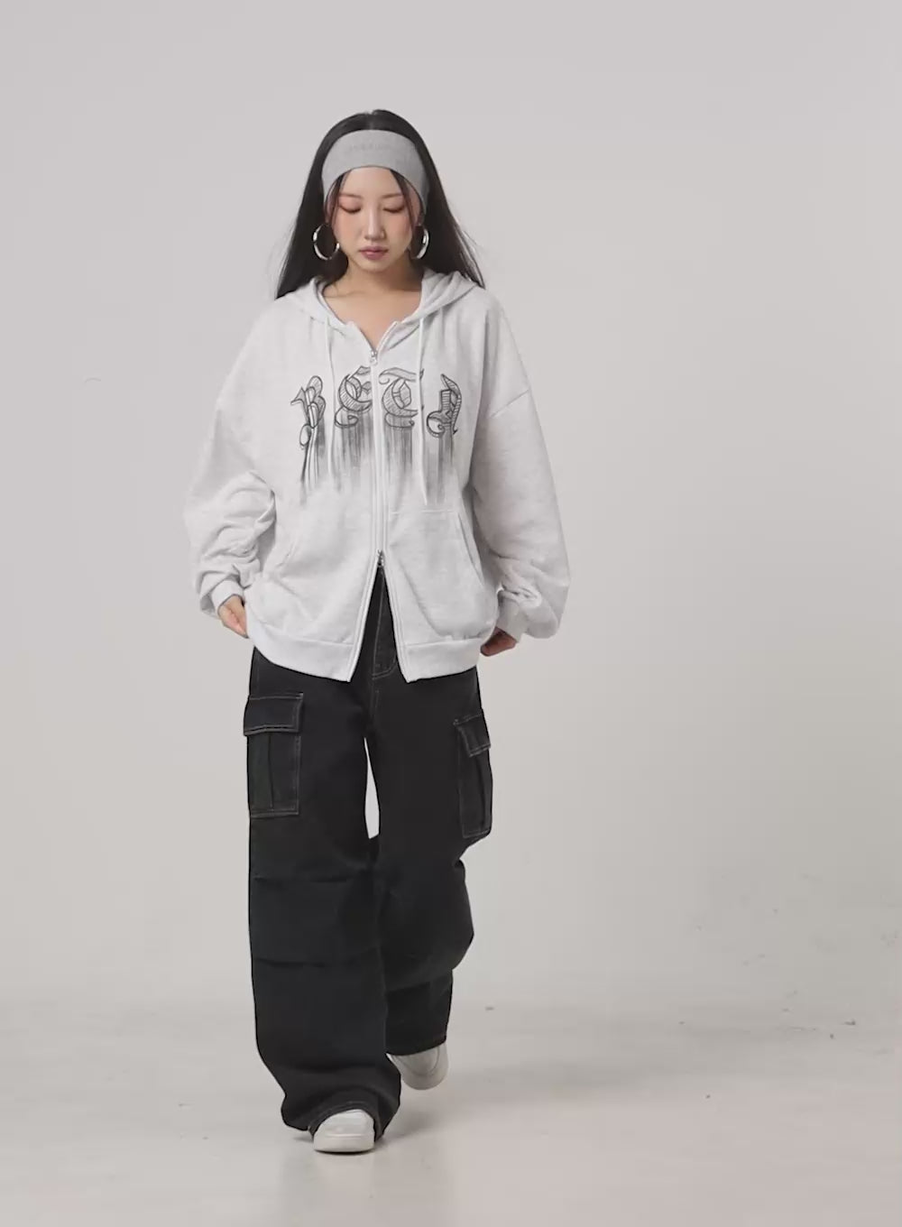 graphic-zip-up-hoodie-cn406 / Dark gray