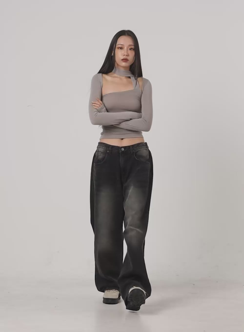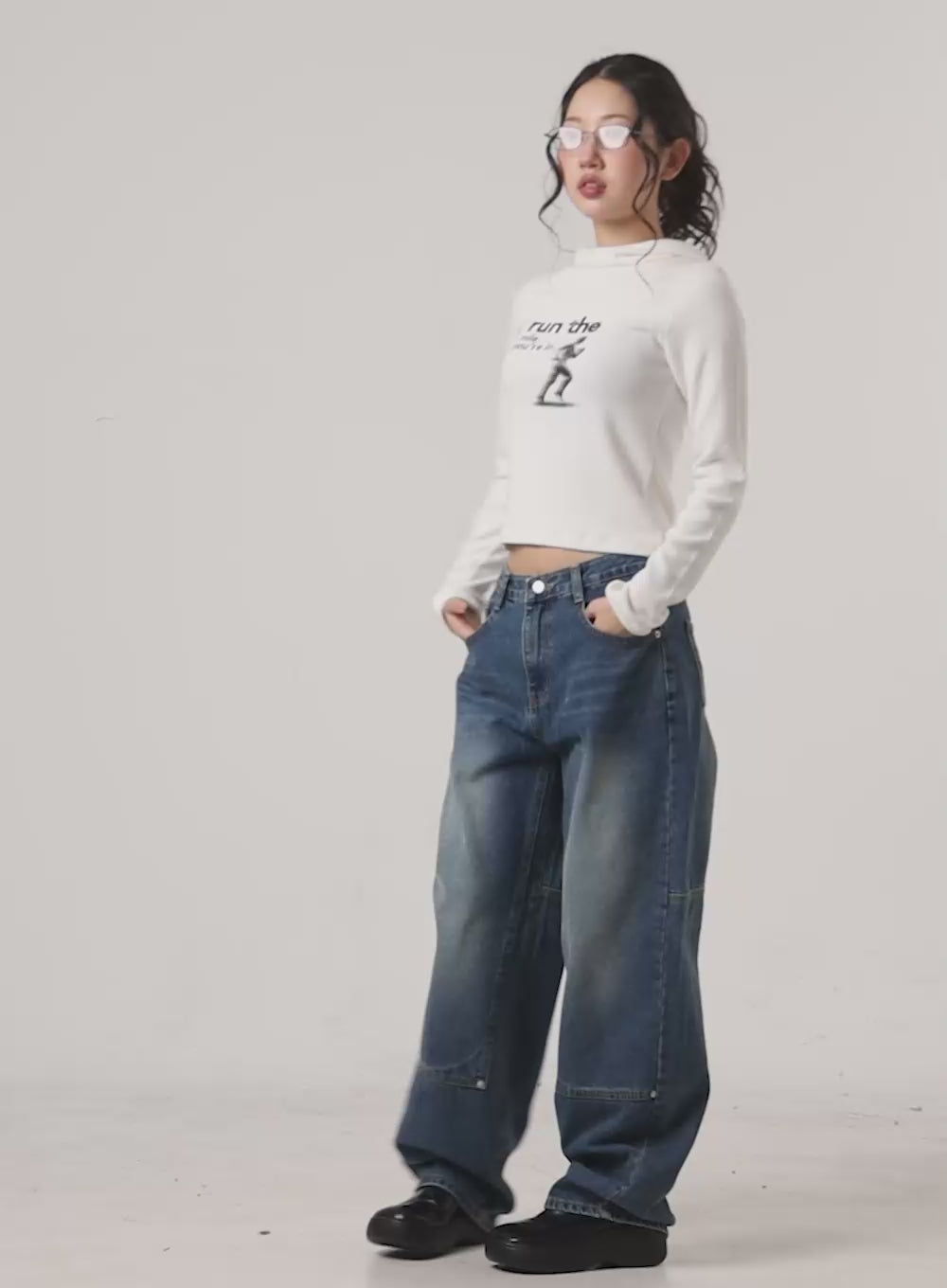 Evelyn Washed Baggy Jeans (Dark Blue) IS402