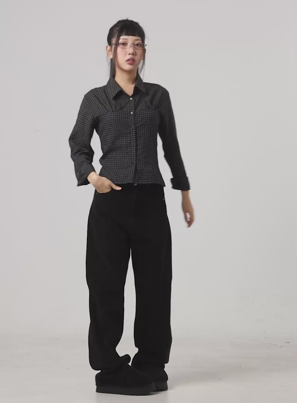 buttoned-long-sleeve-check-blouse-cn406 / Black