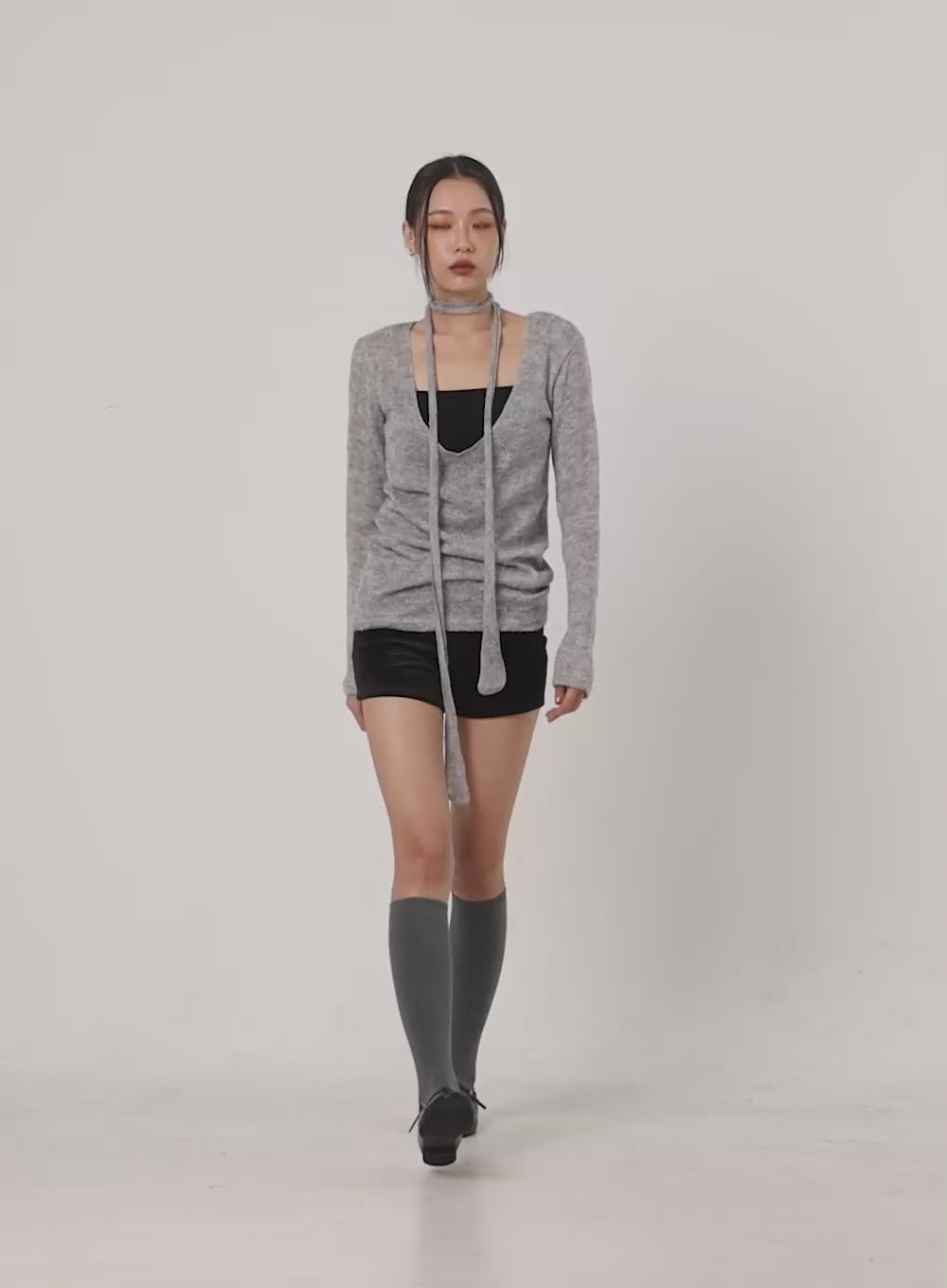v-neck-buttoned-crop-cardigan-co431 / Dark gray