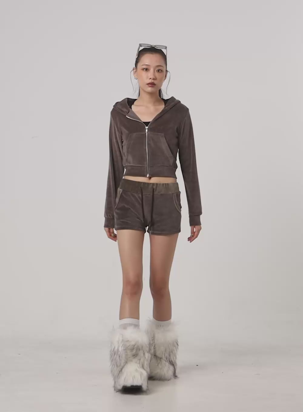 solid-velvet-crop-hoodie-co424 / Brown