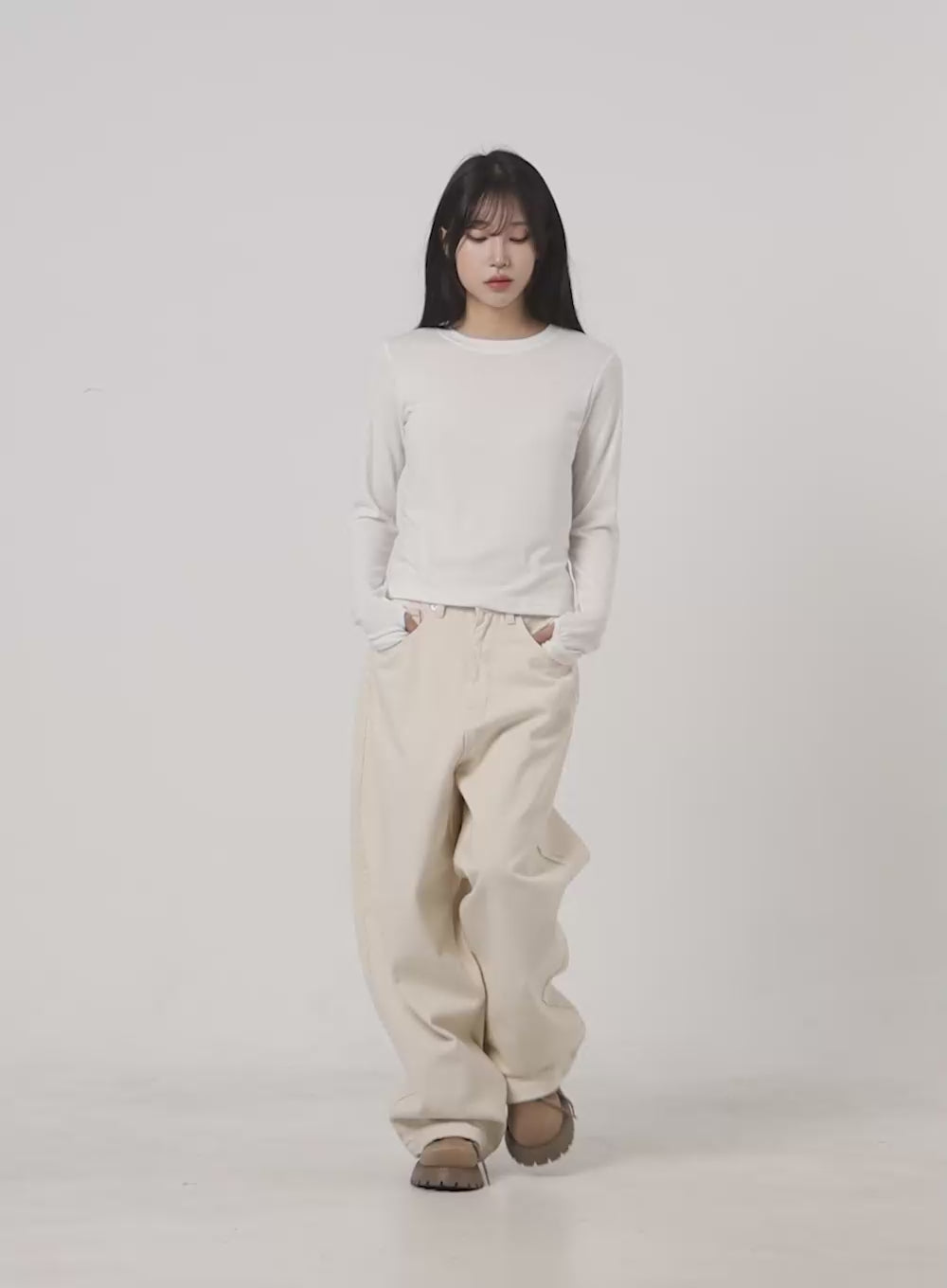 solid-comfort-wide-leg-trousers-co418 / Light beige