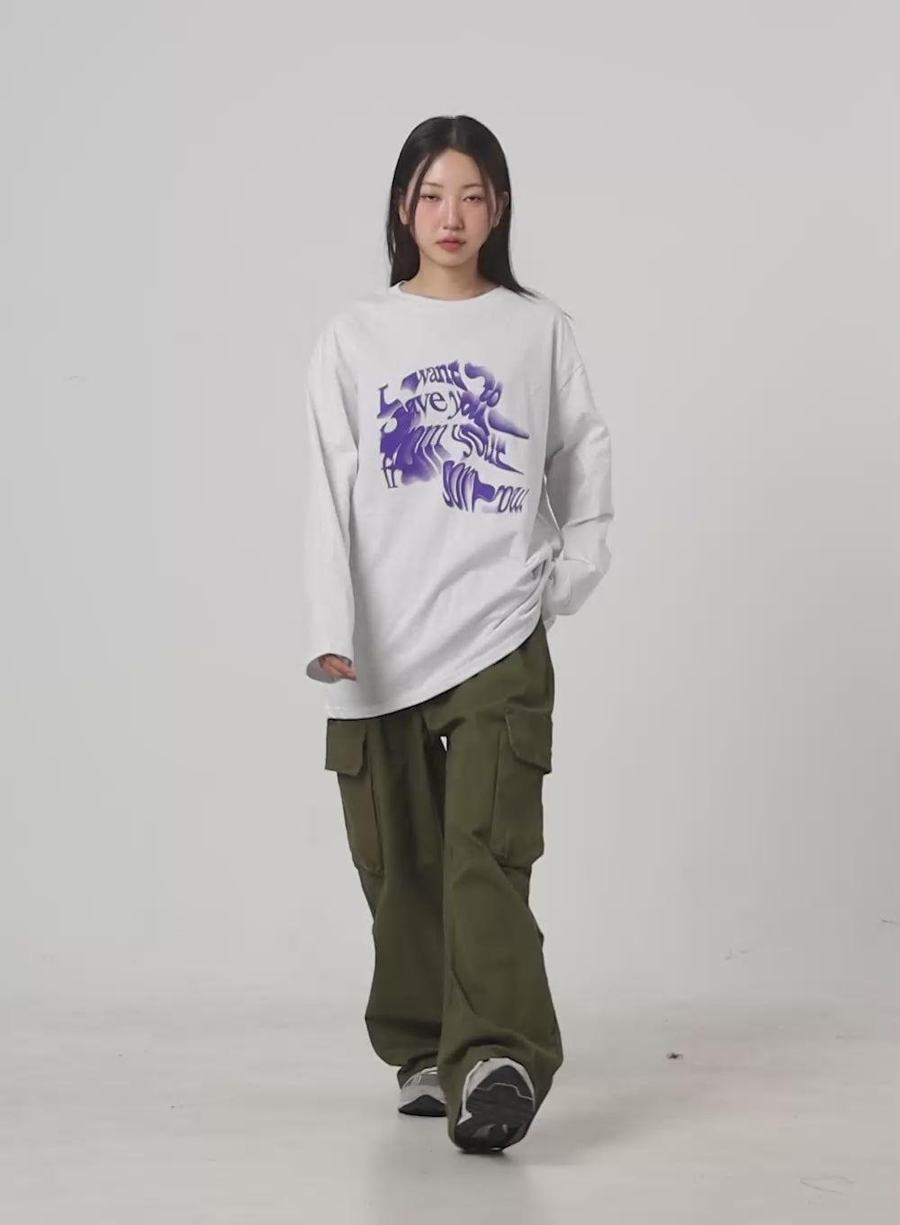 lettering-long-sleeve-crop-tee-co415 / Blue
