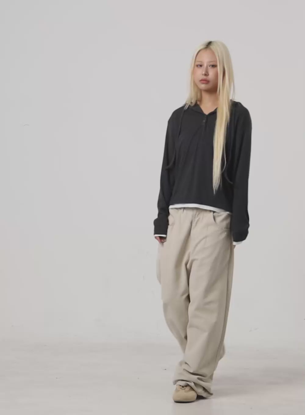 solid-cotton-wide-leg-pants-co415 / Light beige