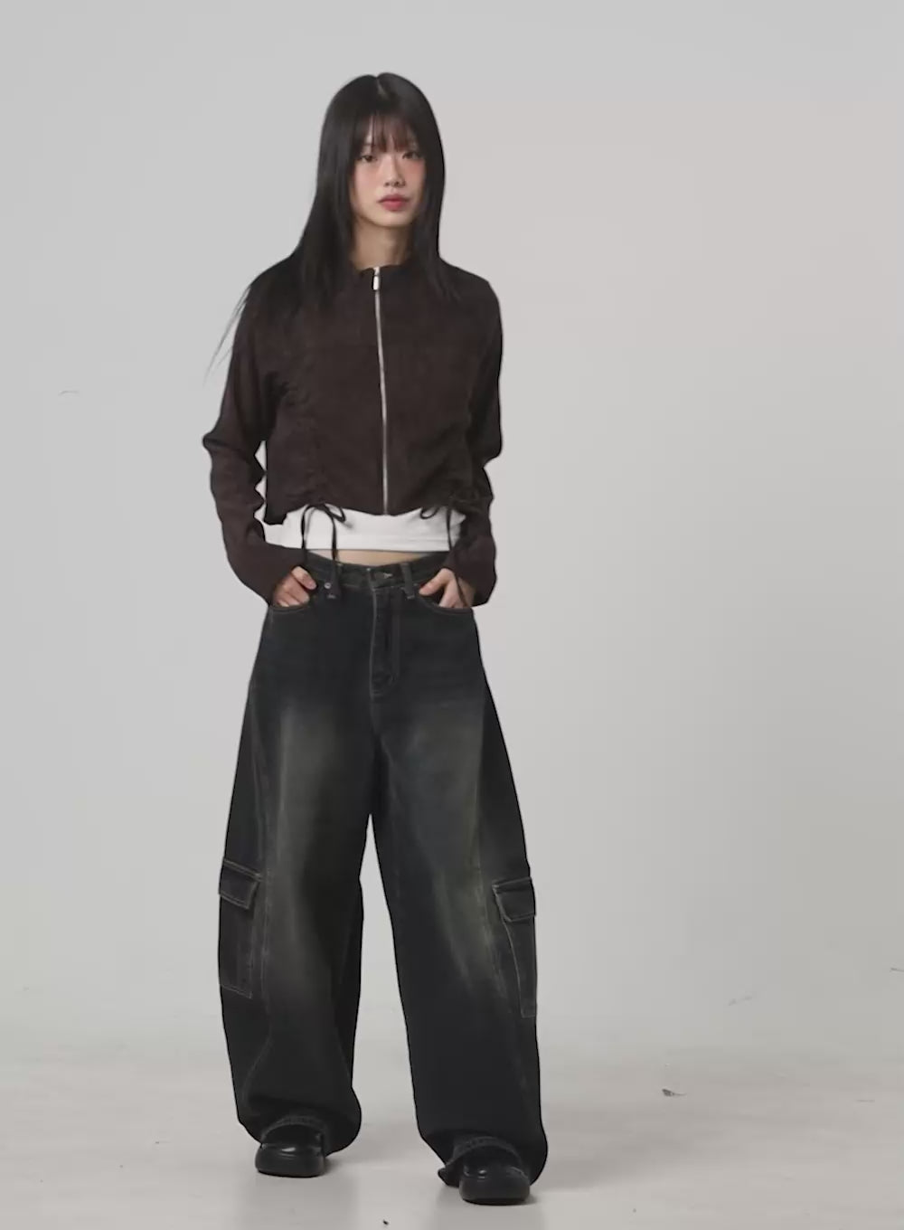 zip-up-washed-pigment-two-way-top-co415 / Dark gray