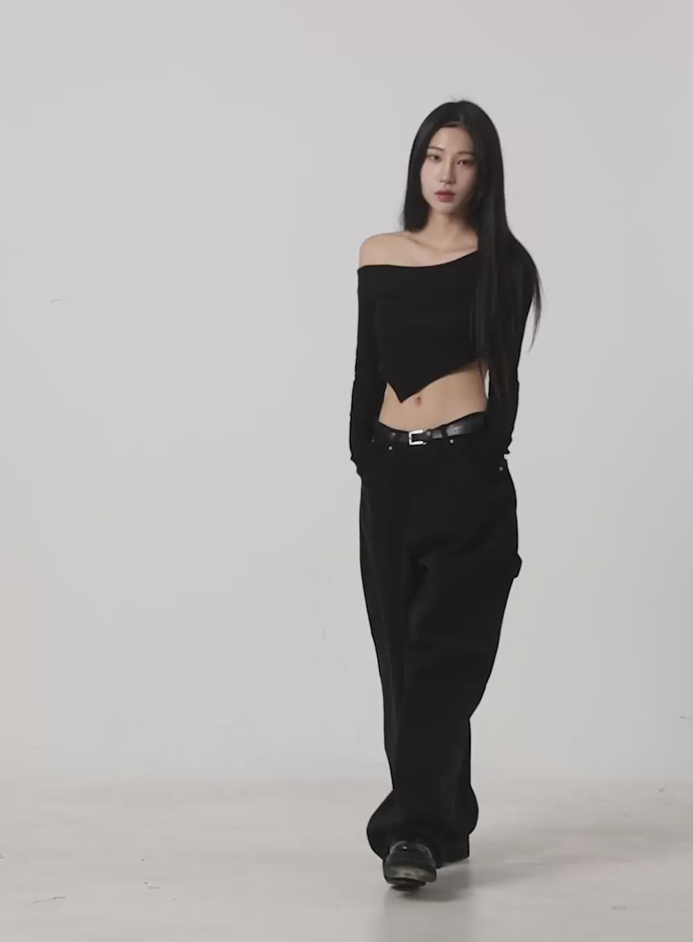 strappy-off-shoulder-cropped-blouse-iu523 / Black