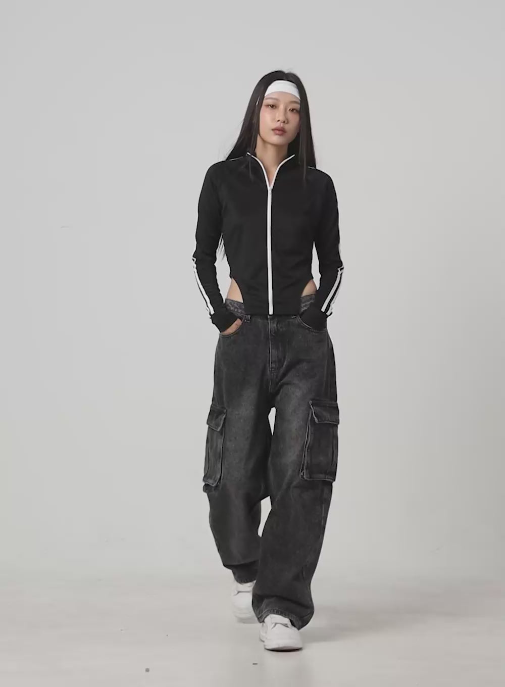 camo-cropped-hoodie-zip-up-co402 / Gray