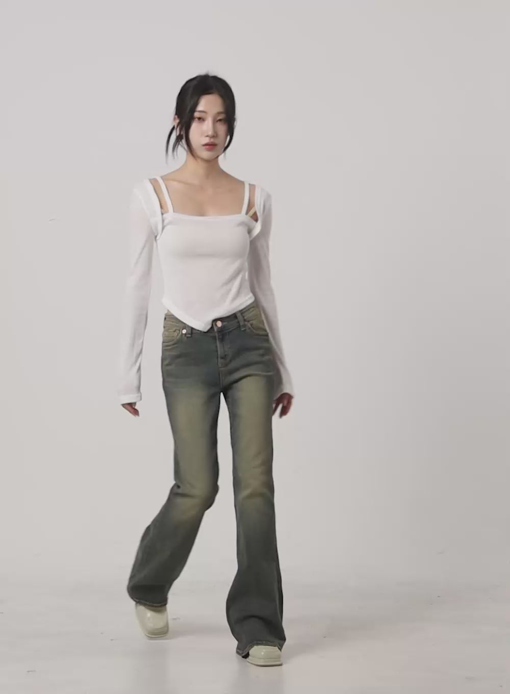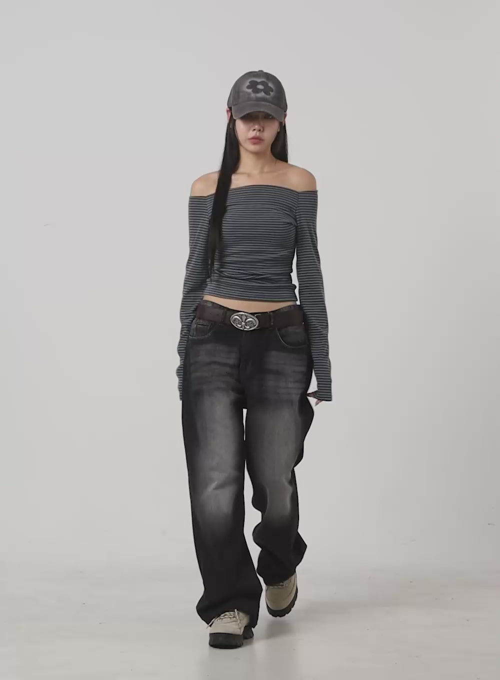 hyorin-washed-wide-leg-jeans-cu523 / Blue
