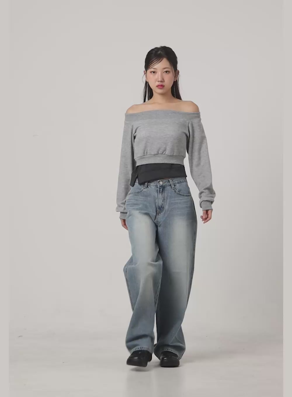cowboys-off-shoulder-crop-tee-cu518 / Gray