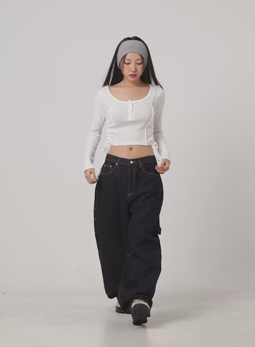 ribbed-button-v-neck-crop-top-os410 / Gray