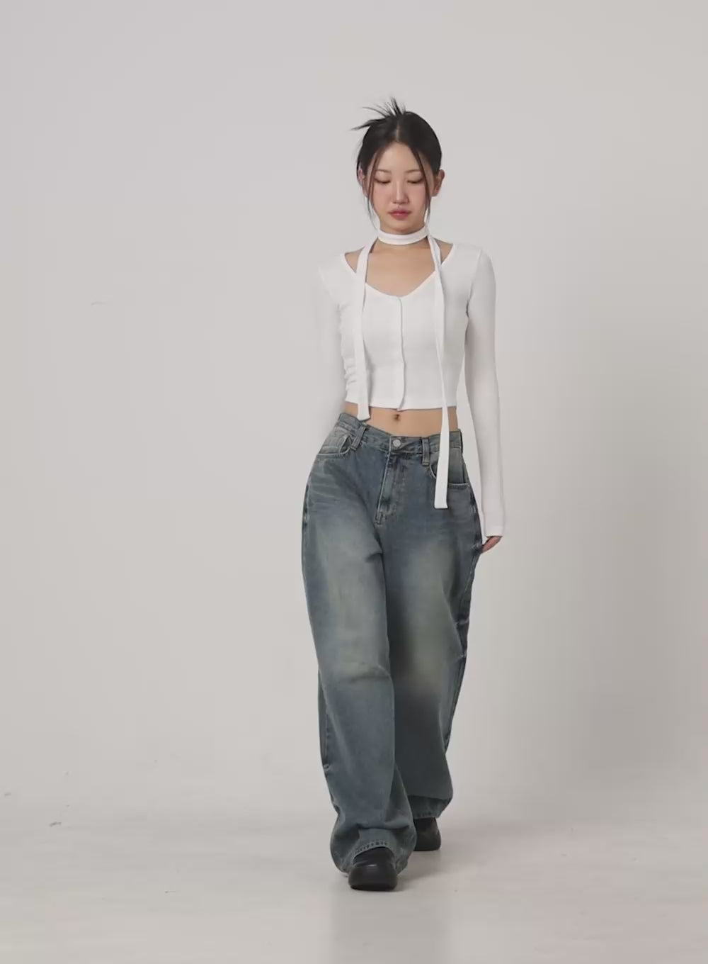 buttoned-halter-neck-crop-top-cu518 / Gray