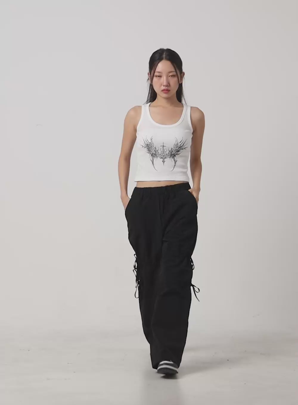 string-banded-baggy-cargo-pants-cs403 / Dark gray