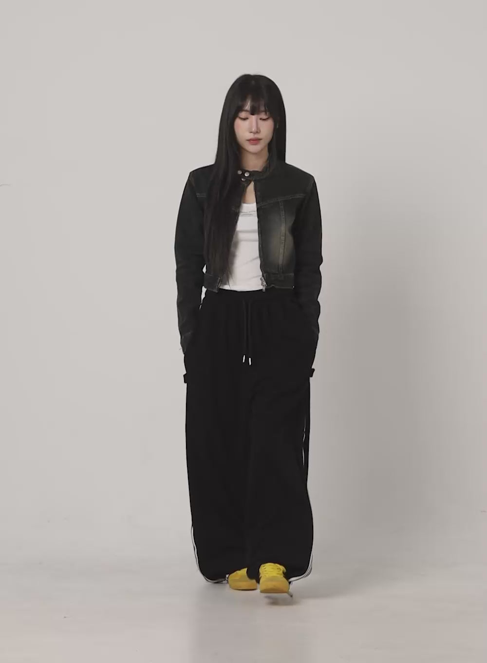 cargo-pintuck-wide-leg-pants-is402 / Black