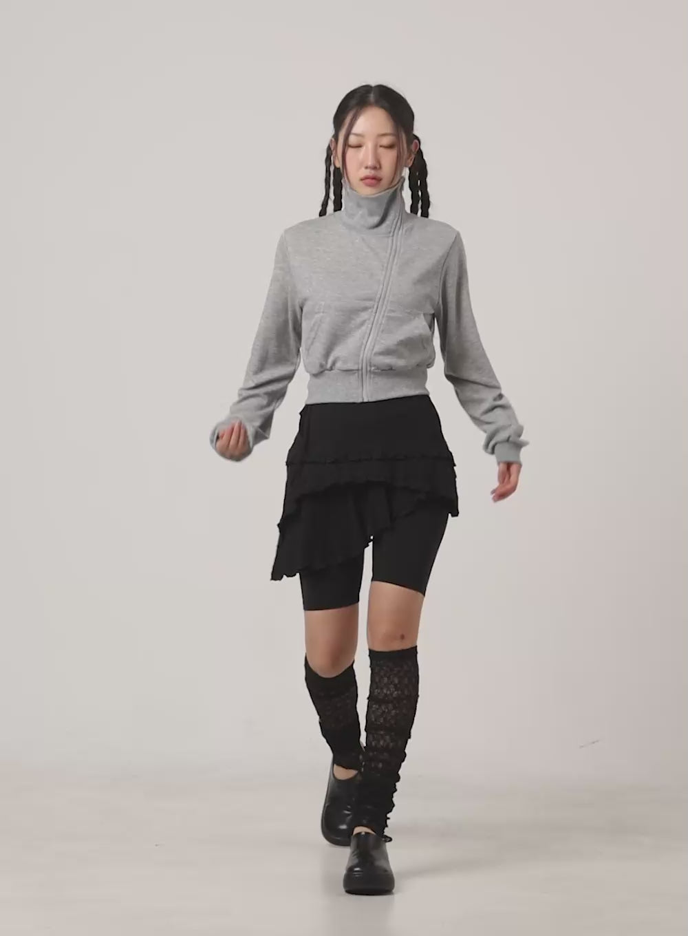 Turtleneck Zip-Up Crop Sweatshirt CG414