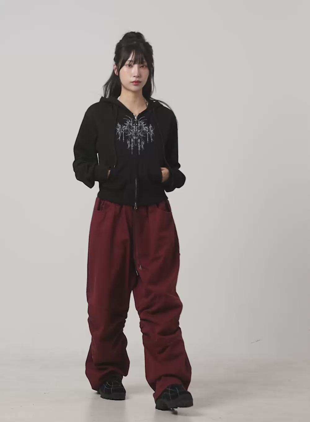 pintuck-sporty-sweatpants-cg420 / Dark red