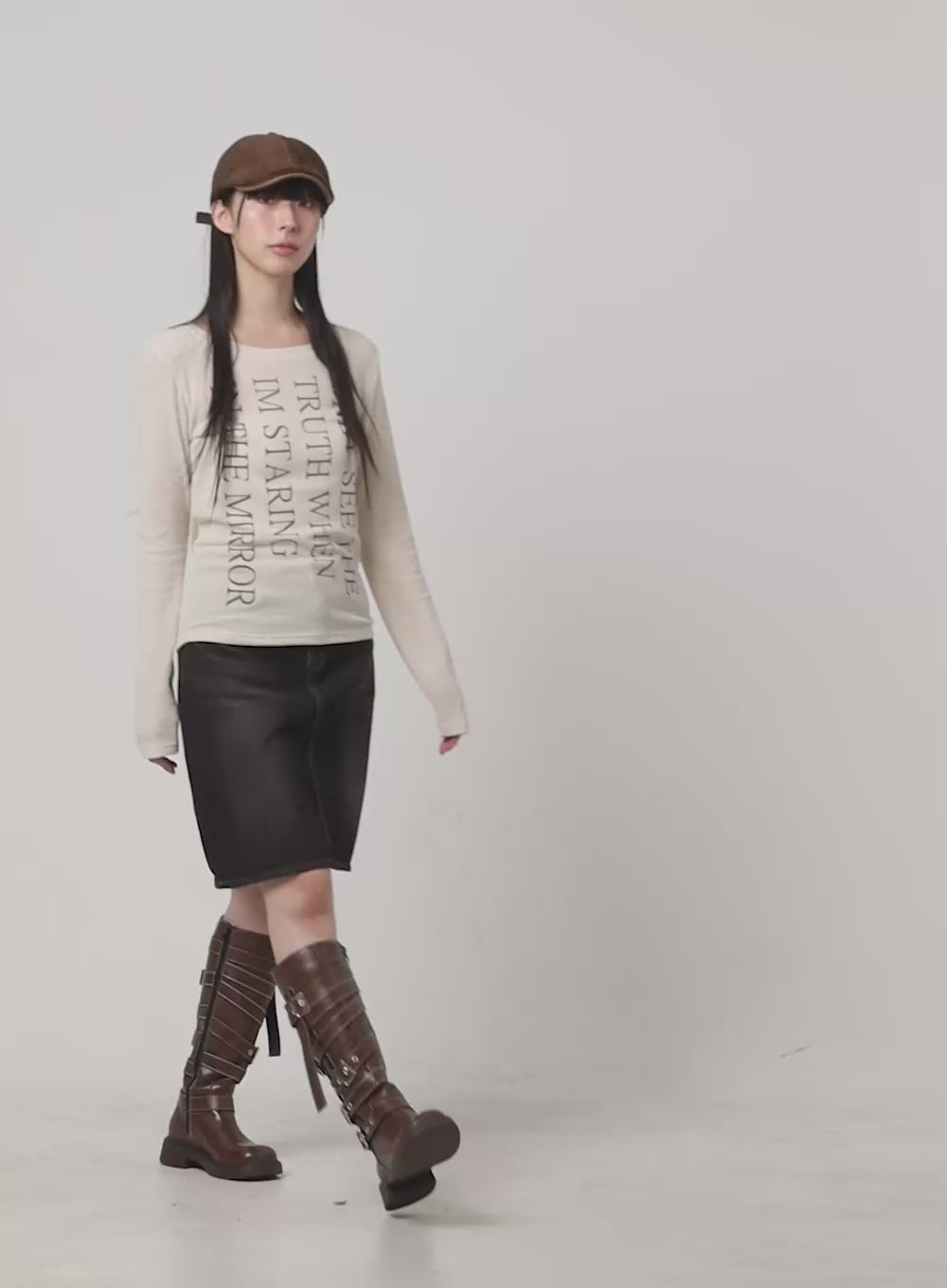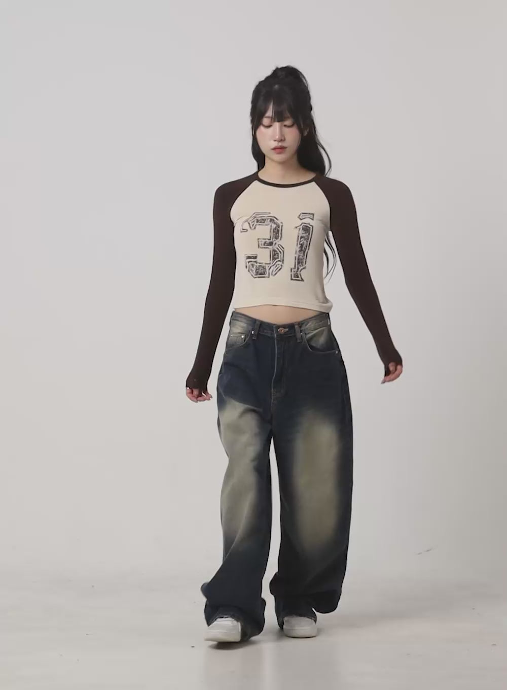 graphic-raglan-long-sleeve-crop-tee-cg421 / Dark brown