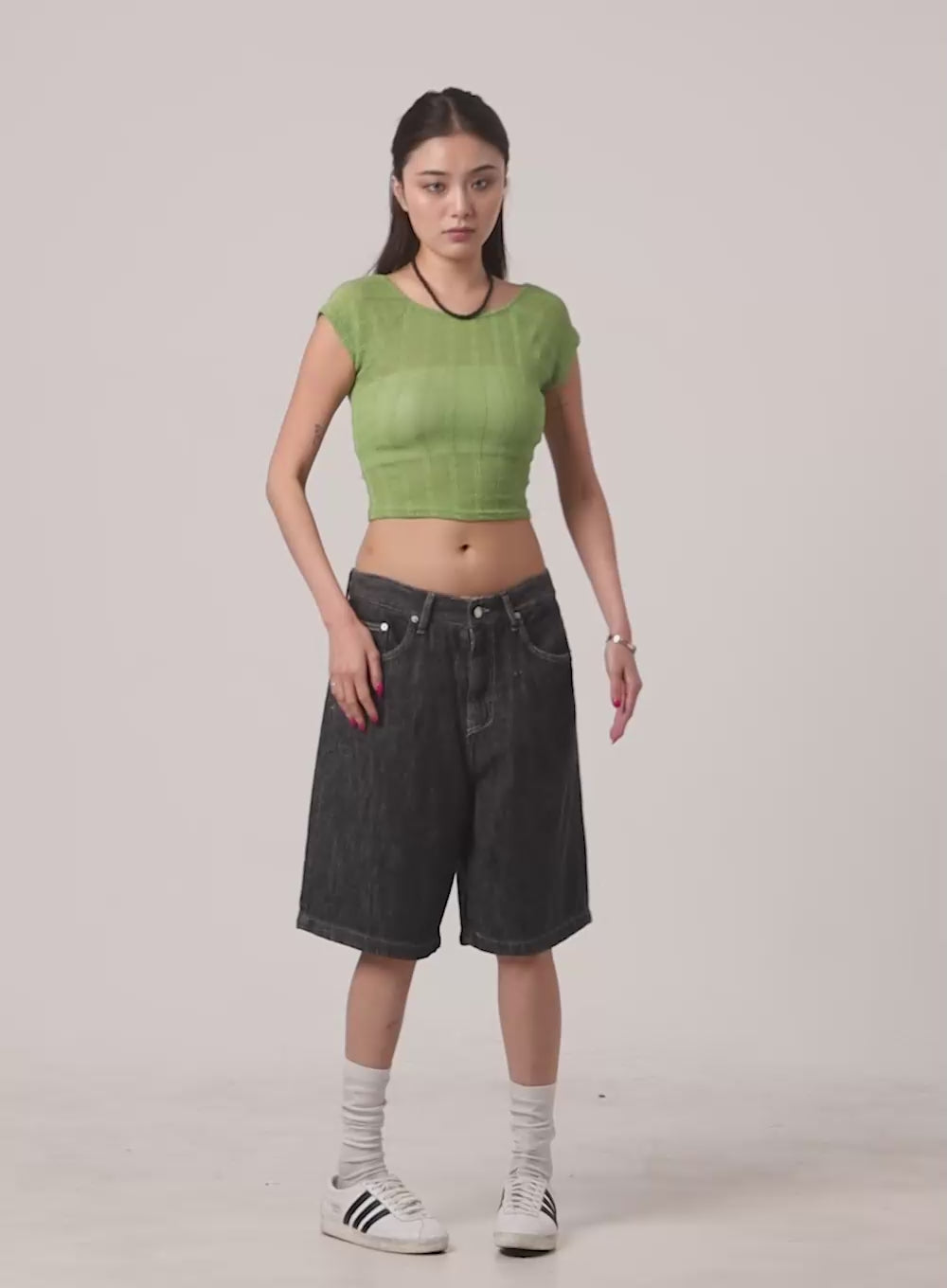 unbalanced-ribbon-twist-crop-top-cu417 / Black