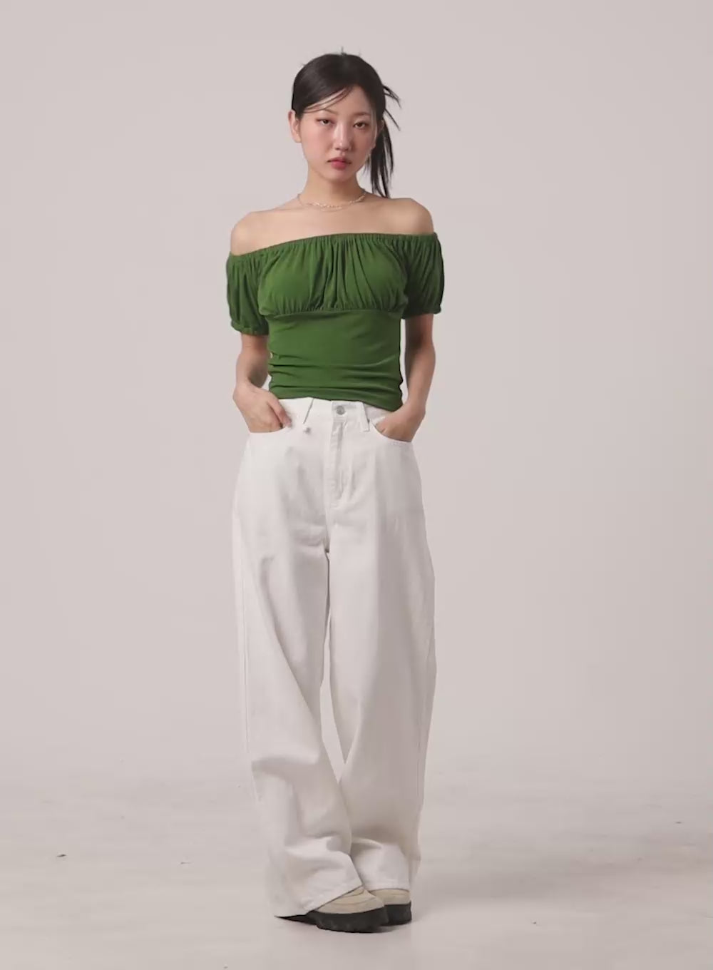 stripe-off-shoulder-tee-cy428 / Green