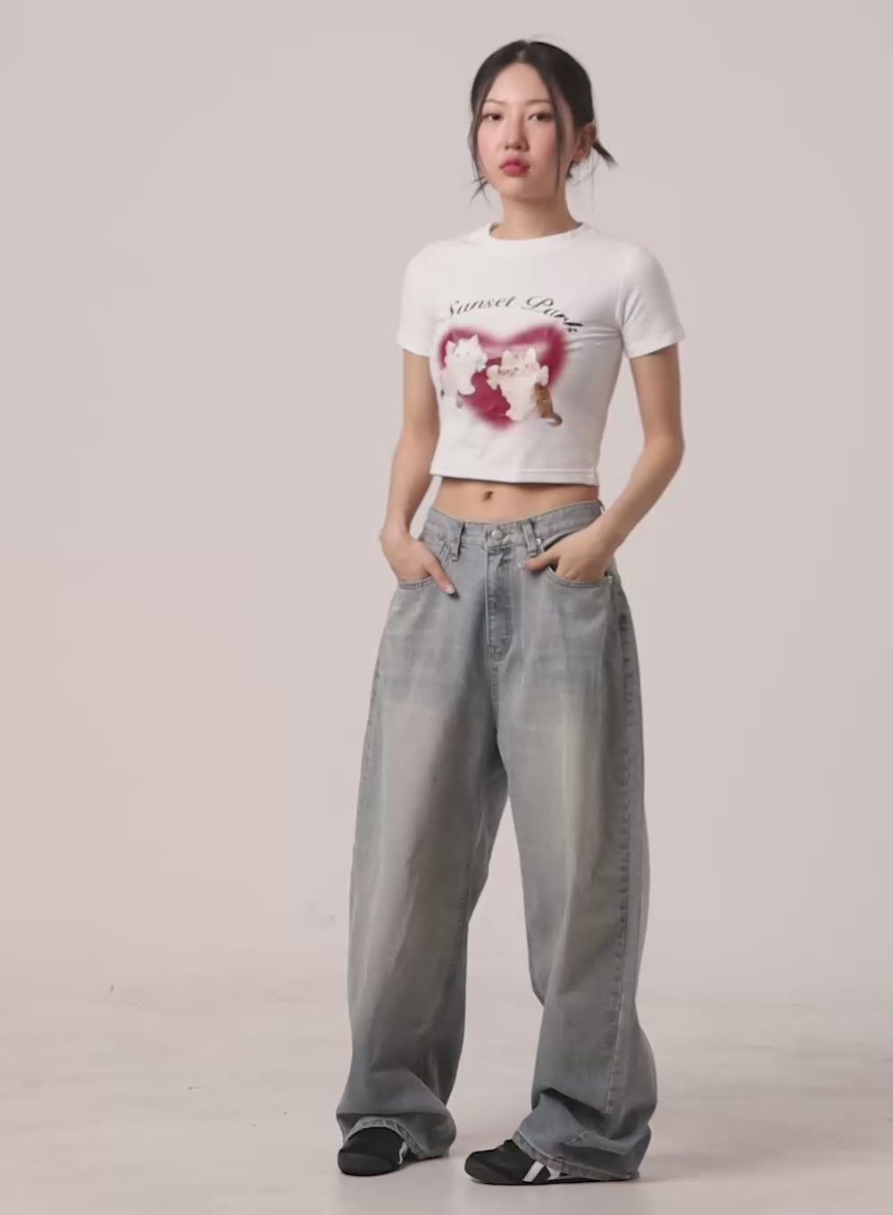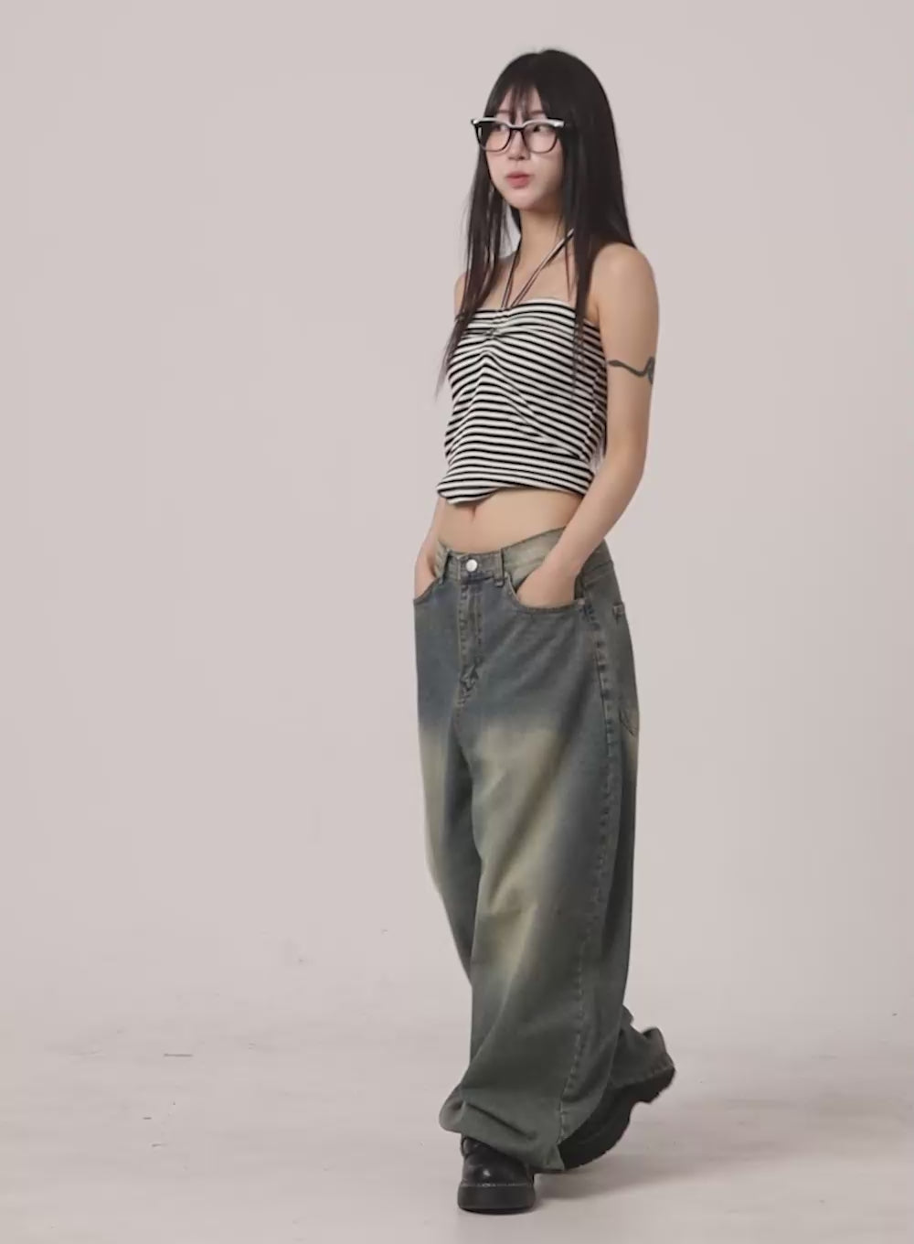 relaxed-baggy-washed-jeans-cy408 / Blue