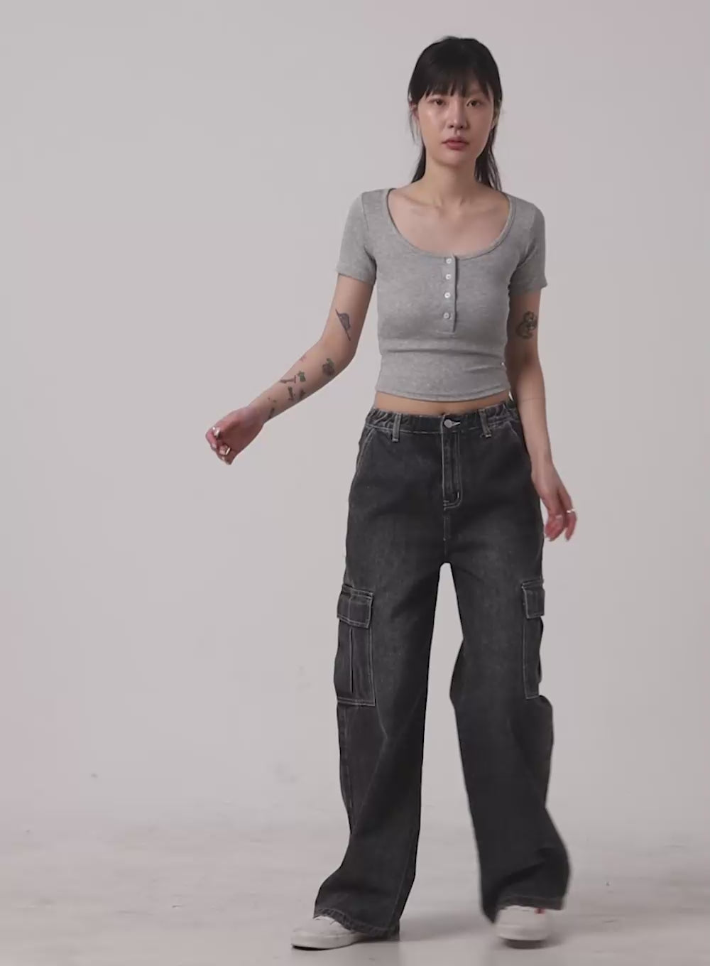 slim-fit-buttoned-u-neck-crop-top-iy410 / Gray