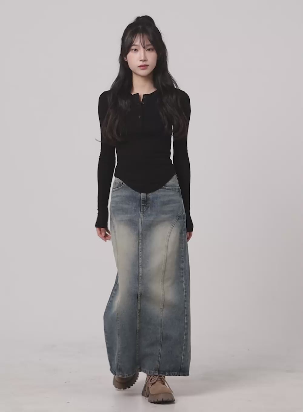 Washed Denim Midi Skirt CA404
